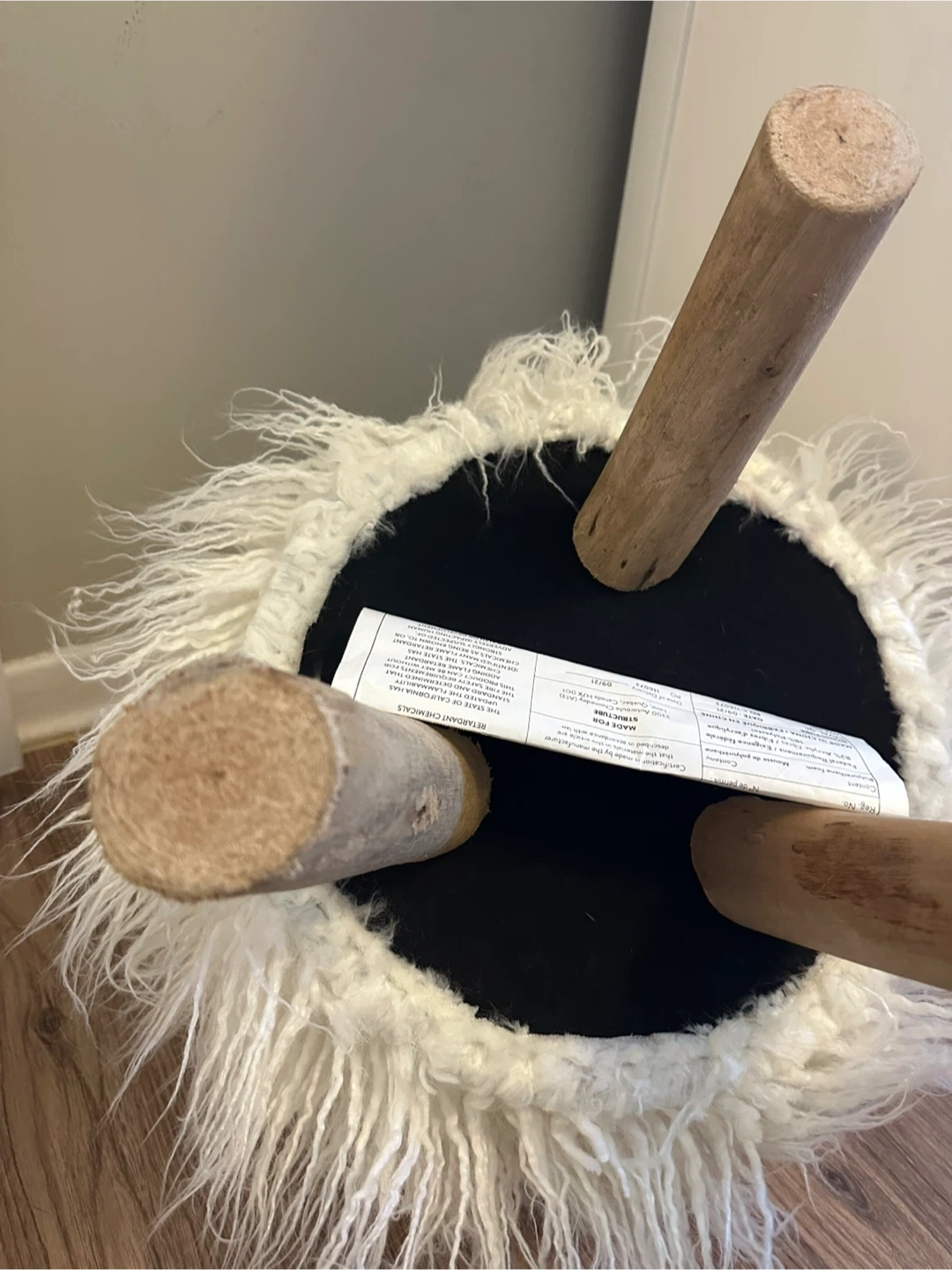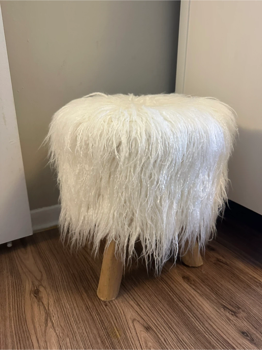Selling a super cute fuzzy white ottoman stool! It's in great condition and would be a lovely addition to any room. It has wooden legs. Brand: Structube (not available online or in stores anymore) Original Price: $69 + tax Like new. No stains, no scratches.