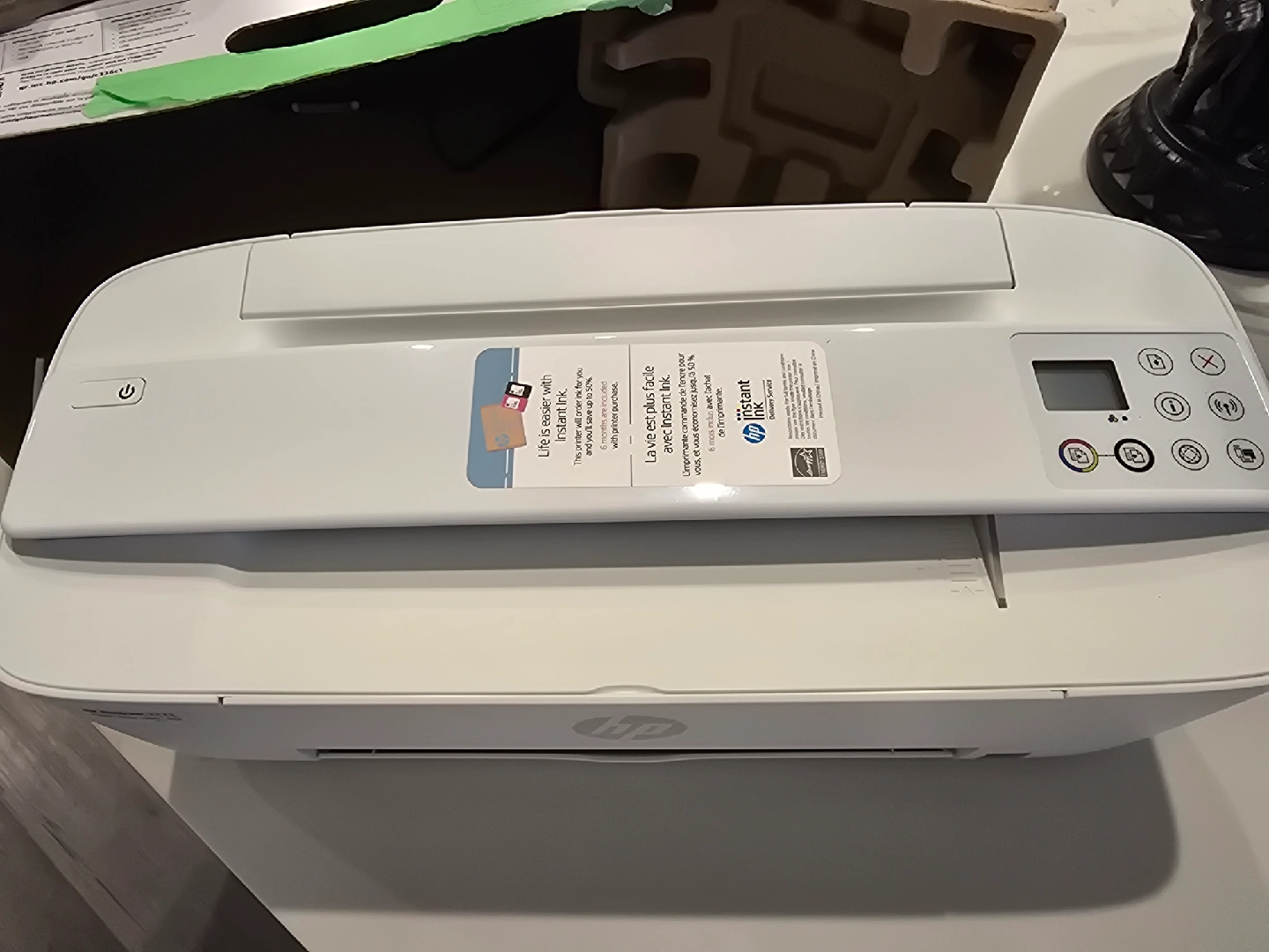 Selling an HP Deskjet 2722 all-in-one printer in white. It comes with the box. - All-in-one functionality: print, scan, and copy - Wireless connectivity - Mobile printing capability