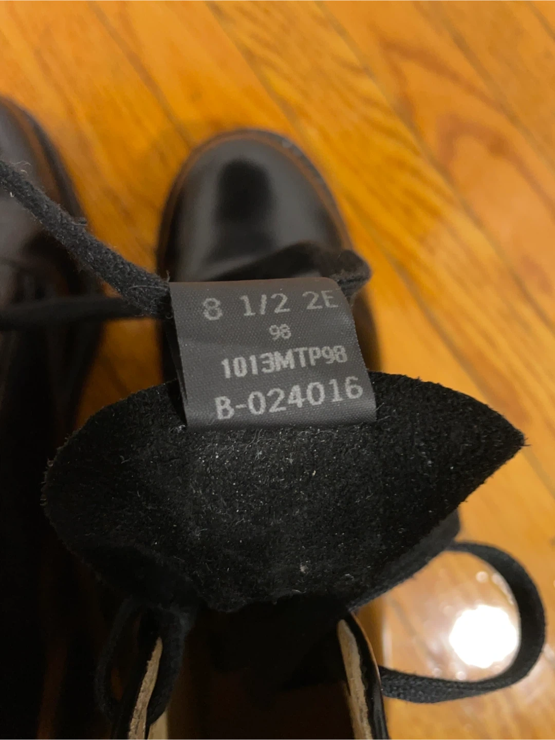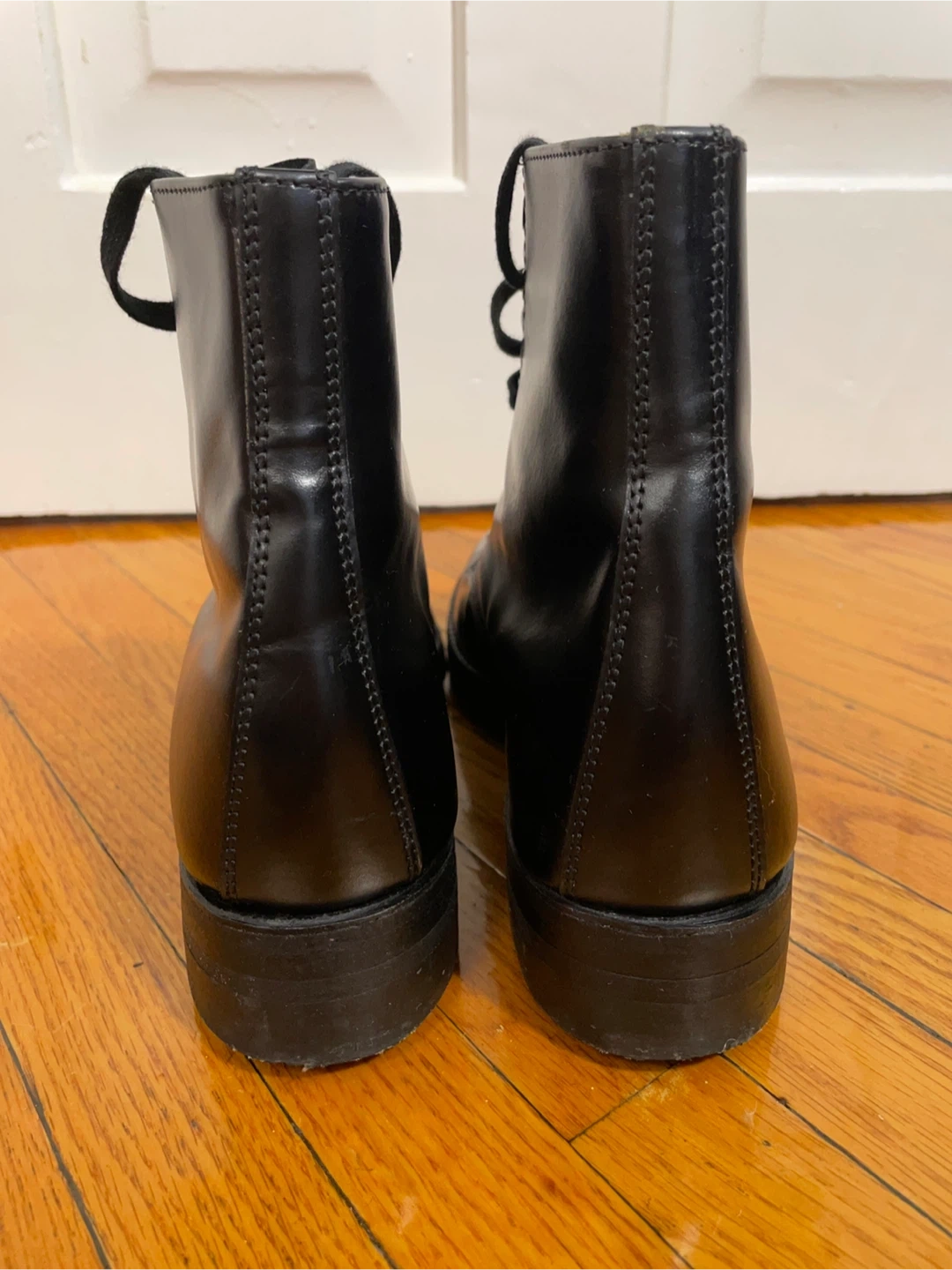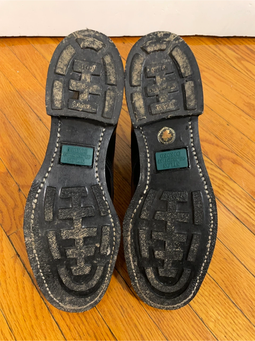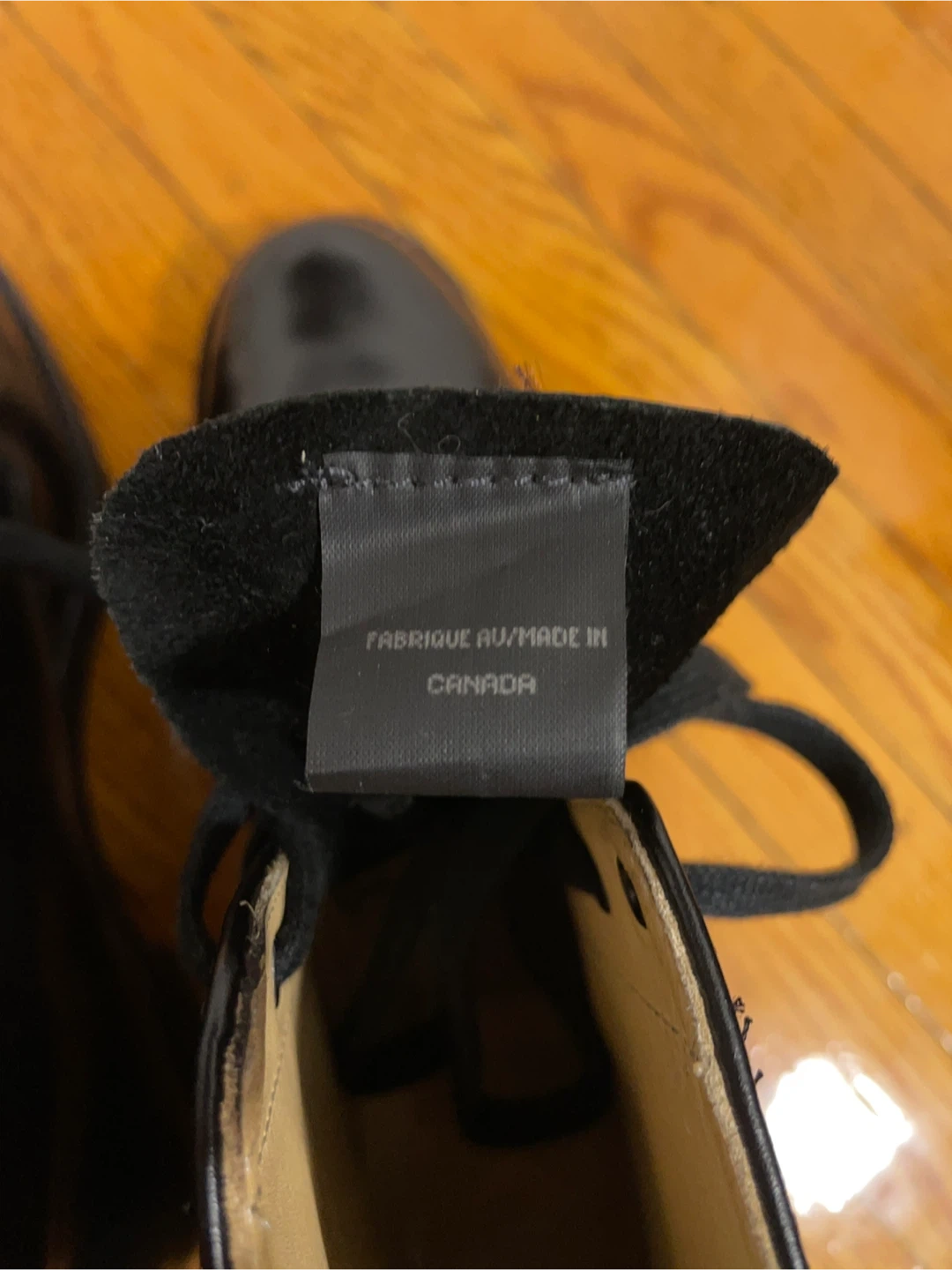 Made in Canada, new old stock, look to have been worn just once or twice–like new! 6" 8 eye, high-shine black leather with beige leather lining. Size is men's 8.5 2E