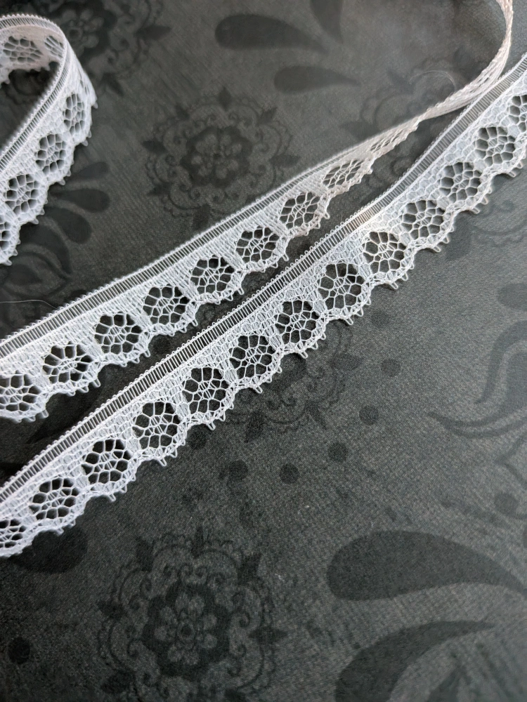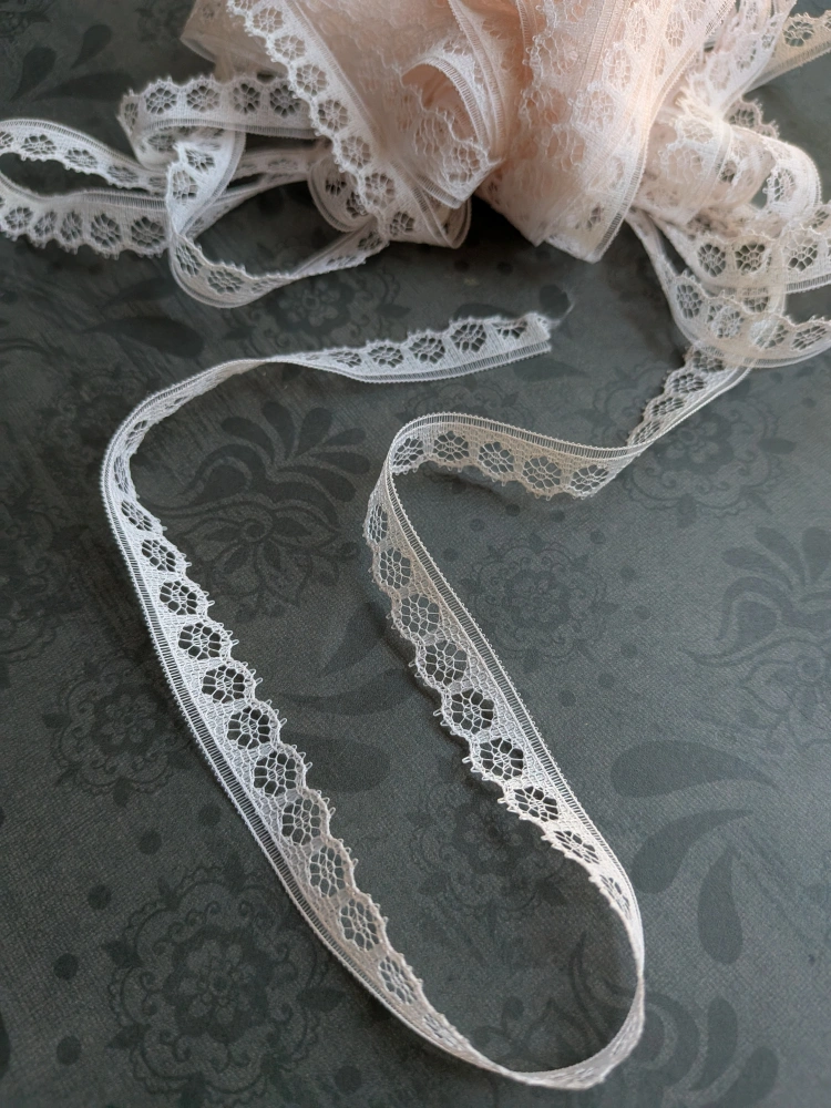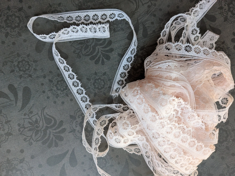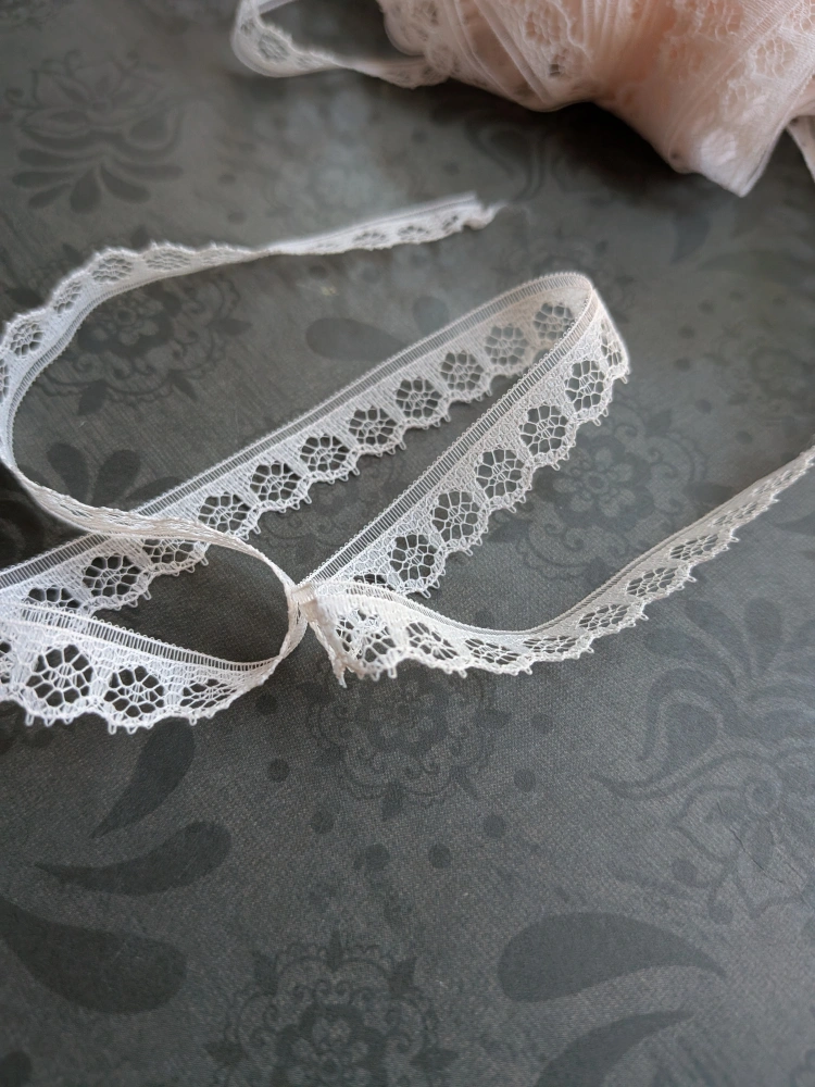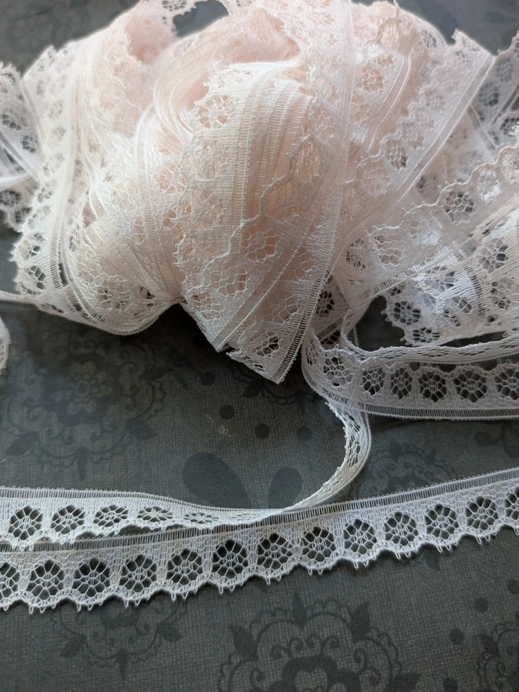 TEN YARDS Vintage pale pink trim It's a pretty floral pattern. One scalloped edge, one straight edge. Very light pink, almost a cream white colour Narrow, about half an inch wide New, not used, fom a larger roll I have more, if you need more, just message for a price if you need more than 10 yards Cash only, no etransfers Location: Rathburn and Renforth dr. Near Etobicoke Olympium/Centennial Park