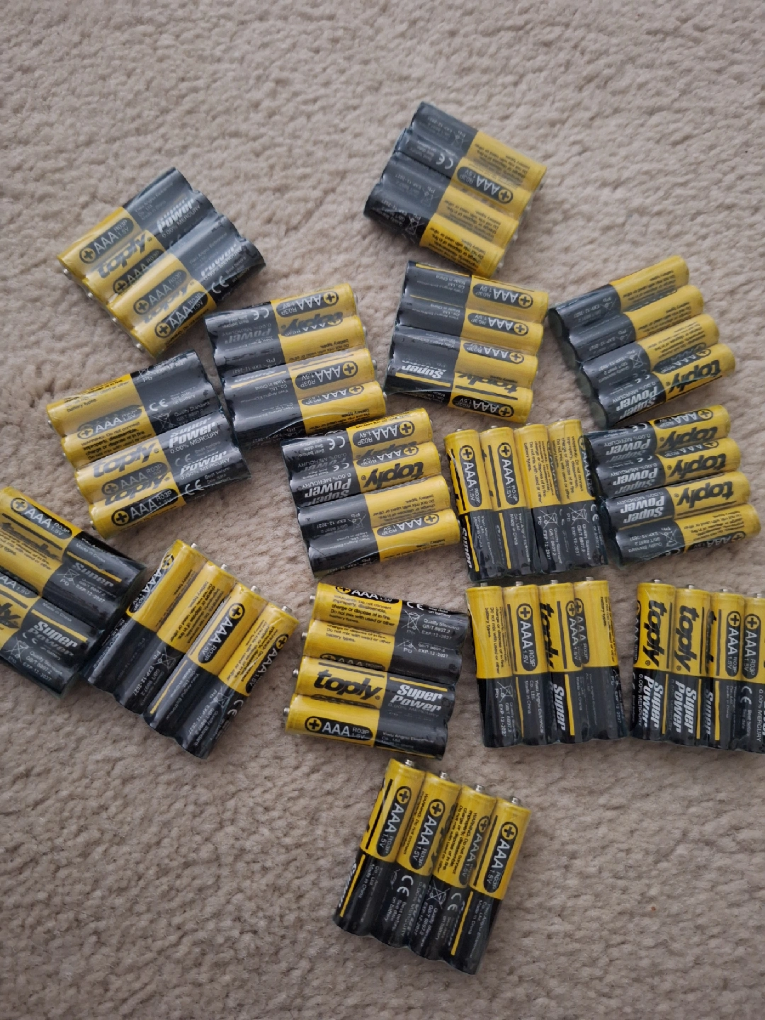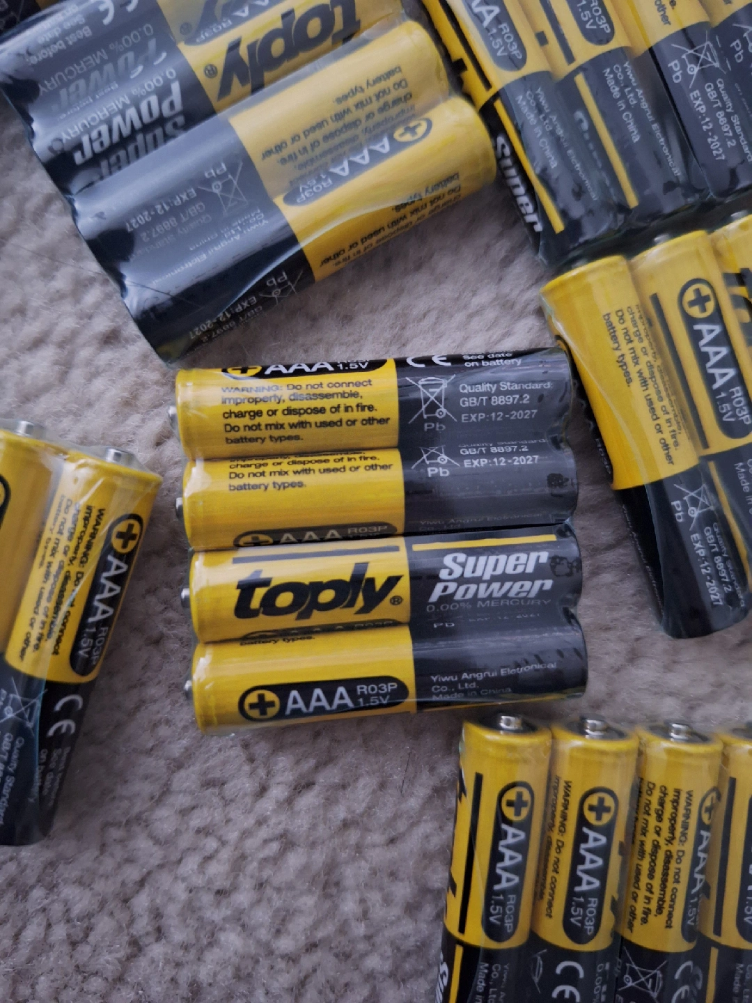 I have a bunch of Tonly Super Power AAA batteries for sale. They're perfect for all your electronic devices! Expire: 12/2027 $1.25 per 4 pack or five 4 pks for $6 π AA also available. $2 per 4 pack or six 4 pks for $11. π