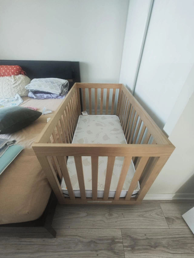 Selling a gently used wooden baby crib. It's in good condition and comes with a mattress. The crib measures approximately 32 inches in width and 57 inches in length, making it a cozy and safe sleeping space for your little one ❗❗❗Price isn't negotiable address: Leslie and elgin mills delivery available