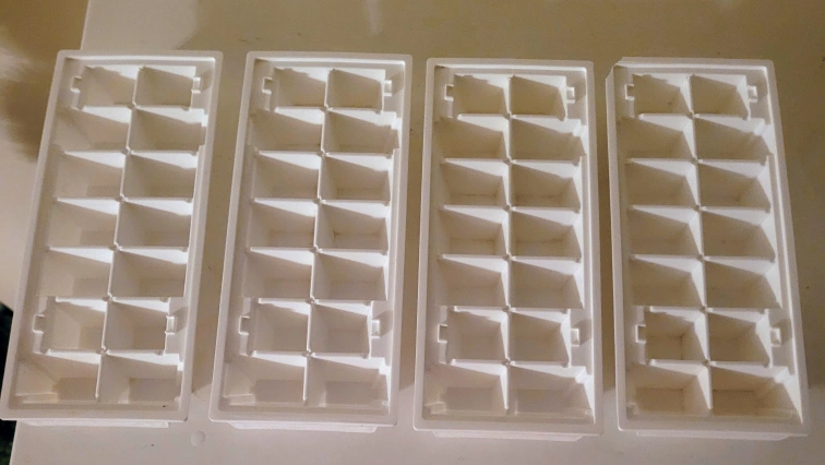 Selling a set of 4 white ice cube trays. They're in great shape and ready to keep your drinks cool!