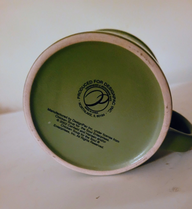Cozy up with this Chicken Soup for the Soul mug! It's a lovely green colour and in great shape for enjoying your favourite warm beverage. Perfect for a comforting cup on a chilly day!