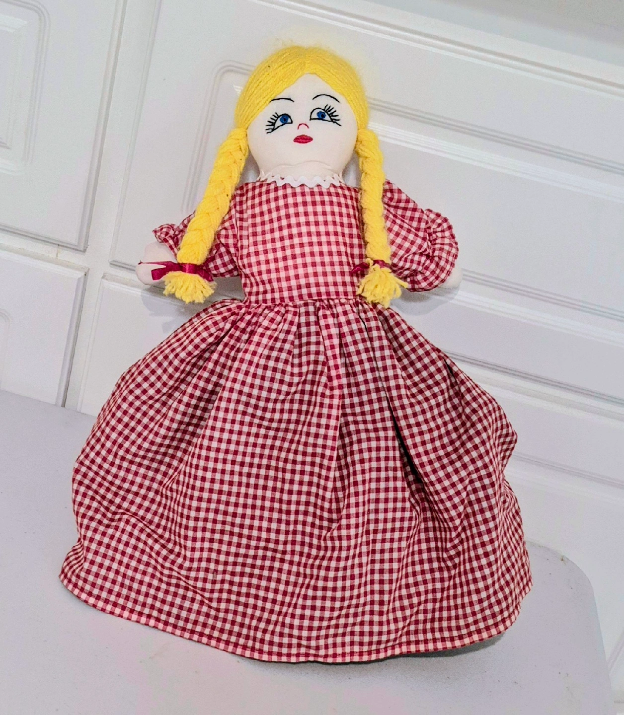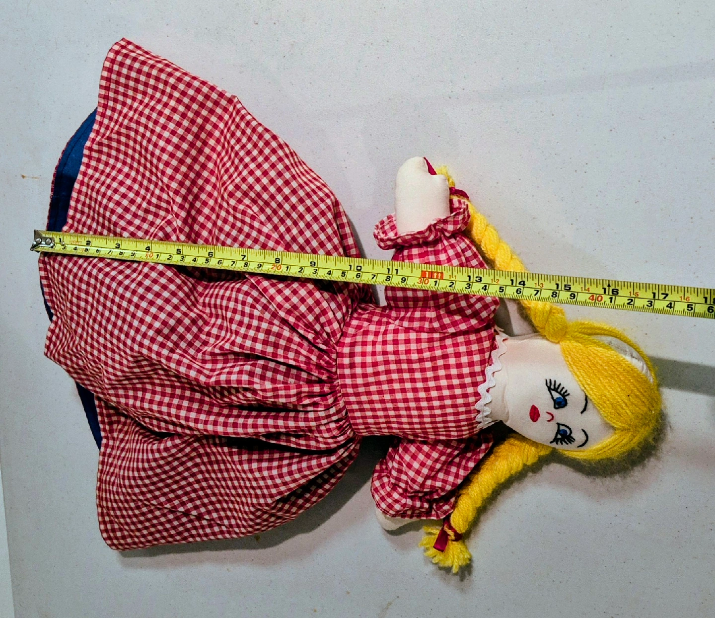 Used in like NEW condition. Been kept on display. Never been played with. 17" tall. This is a vintage Topsy Turvey 3 way Little Red Riding Hood cloth doll. She is approx. 17" tall and reverses from Little Red Riding Hood with a plaid red dress to Grandmother and the wolf wearing a solid blue dress with an apron. Grandmother's face on one side and the wolf on the other side. In very good condition with no holes or wear. * Pickup in Woodbridge at Pinevalley and Highway 7 area * * Address will be given ONLY to serious buyers prior to pickup * * Shipping is available at buyer's expense * * Cash or e-transfer * * Holds are welcome ONLY if e-transfer payment is sent prior to pick up & then you can pick up at your earliest convenience * ✨ ️FEEL FREE TO CHECK OUT MY OTHER ADS! ✨
