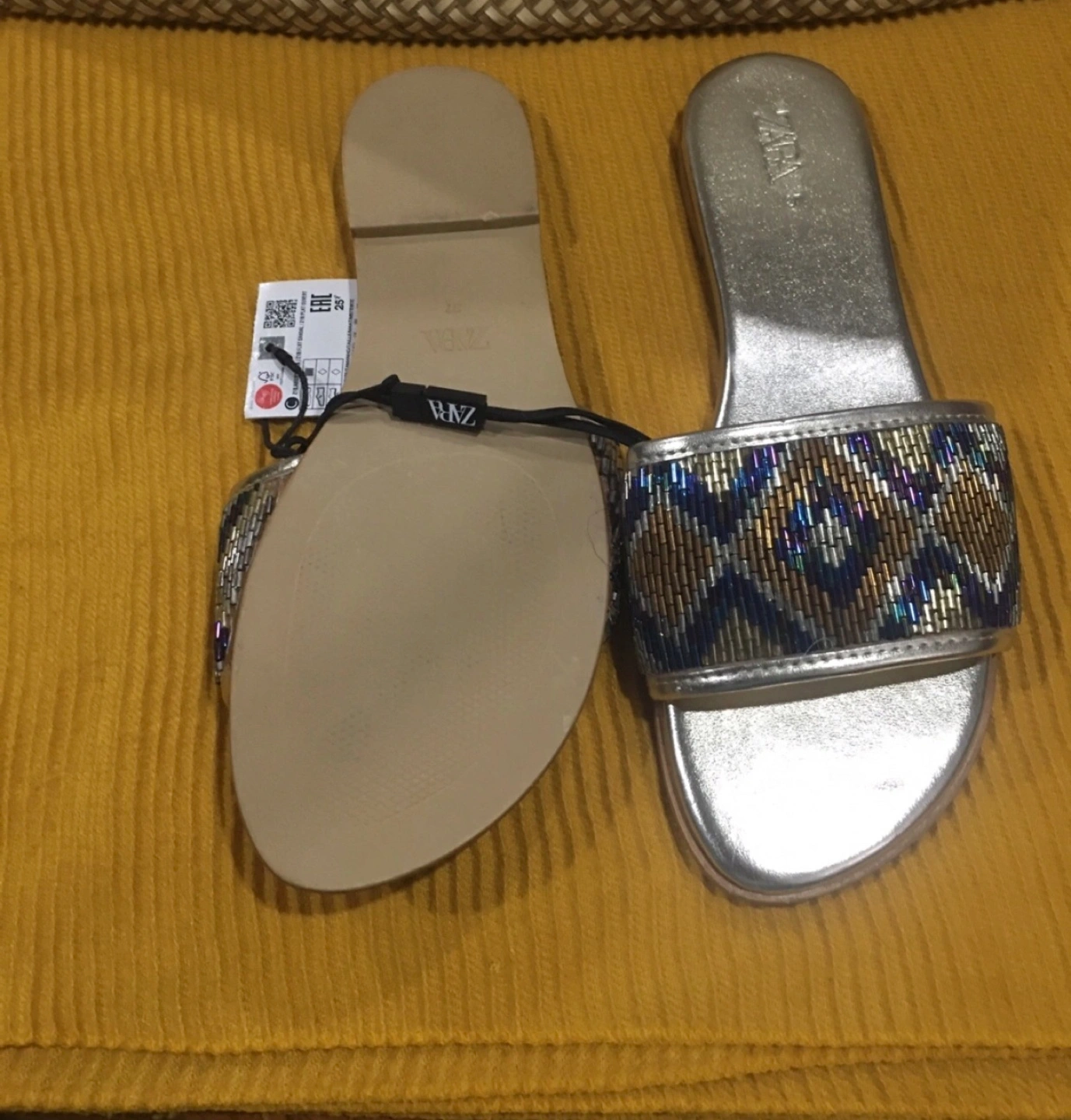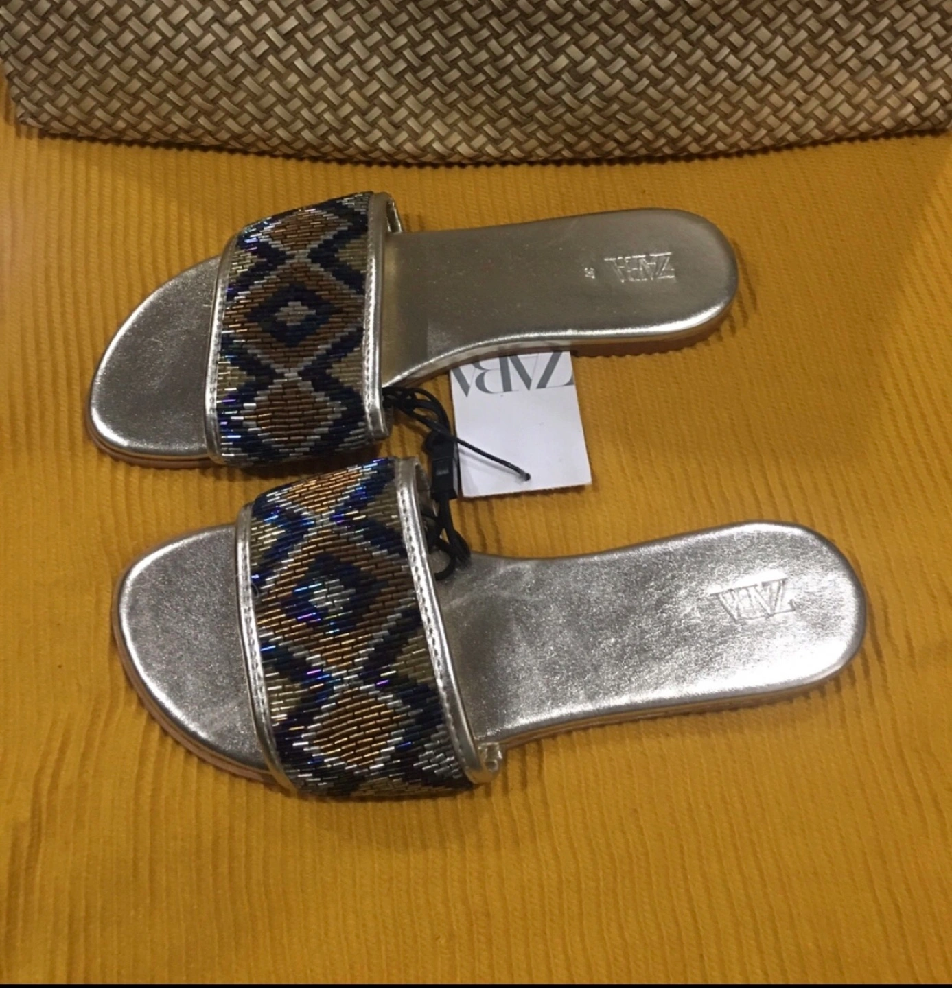 Cute Zara slide sandals with beaded detailing! They are a size 7 and brand new condition. Perfect for adding a little sparkle to your summer outfits! Pick up at Southgate Mall after 6pm on weekdays, weekends between 5-6pm Cash only NONTRY ONS
