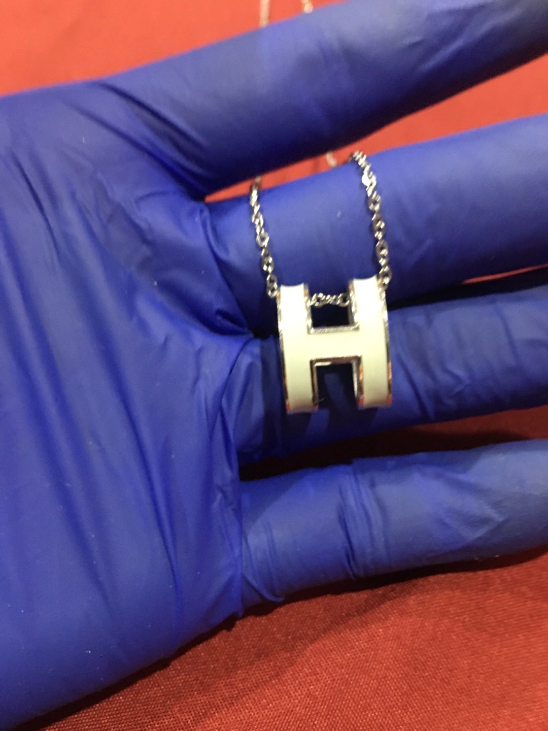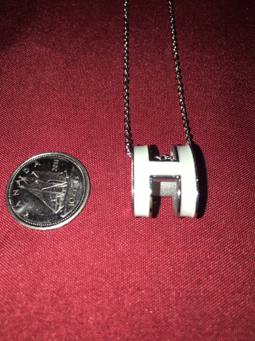 Selling a lovely Hermès necklace with the iconic 'H' pendant. It features a white and silver design, perfect for adding a touch of elegance to any outfit. Pick up at Southgate Mall after 6pm on weekdays, weekends between 5-6pm Cash only Price reflects authenticity