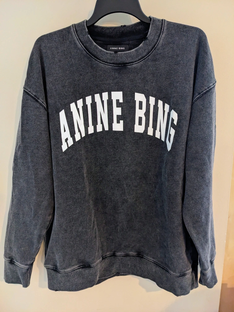 The Tyler Sweatshirt is an oversized crewneck pullover made from midweight 100% cotton fleece in washed black. Screen-printed collegiate lettering at the center chest in contrast white adds to its vintage-inspired look. This style is finished with distressing along the ribbed trim at the collar, cuffs, and hem. The Tyler Sweatshirt is cut for a longer, oversized fit.