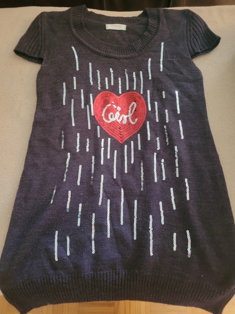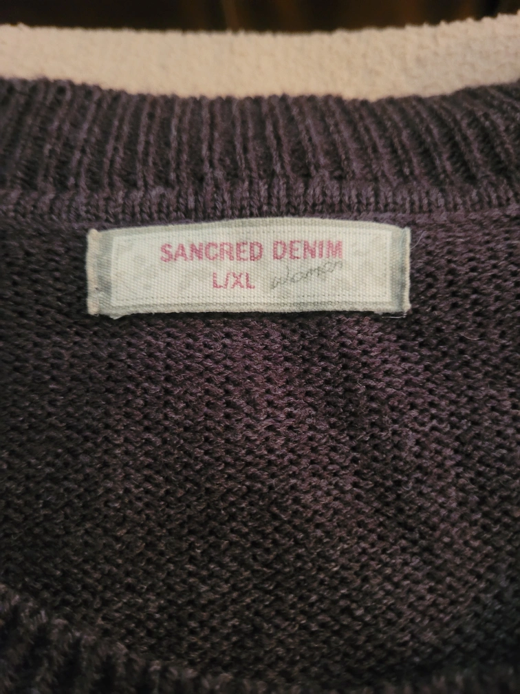 A cute Sancred Denim dress in size L/XL. It's a dark colour with a red heart and silver accents