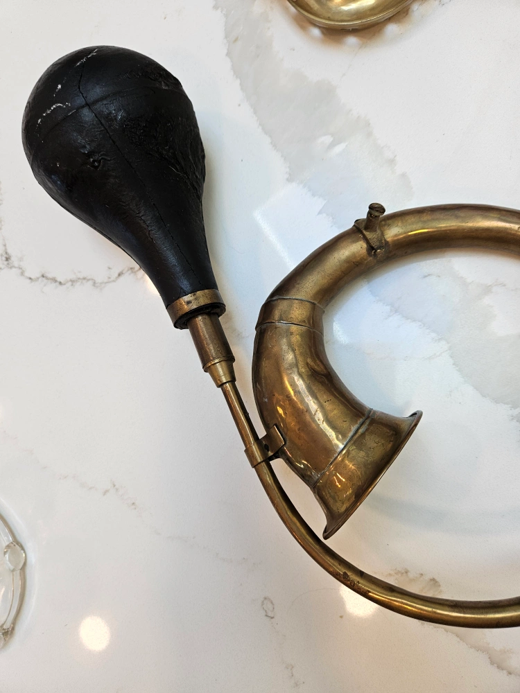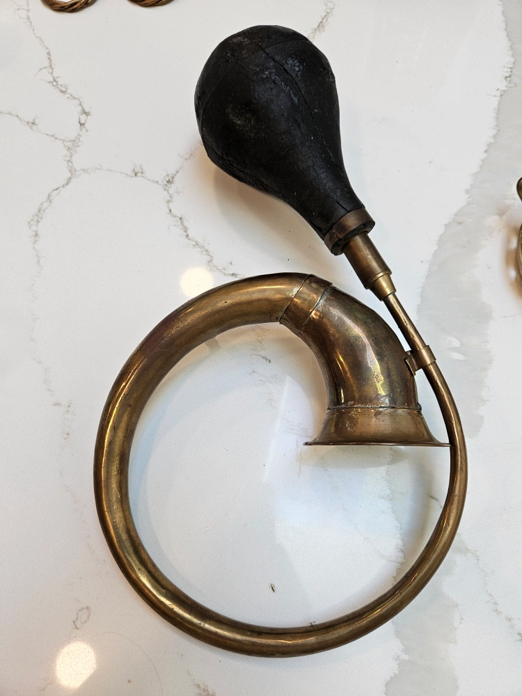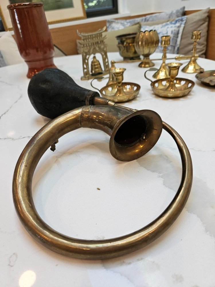 Selling a vintage brass pot with small handles and a unique brass horn. Both show signs of wear and patina, adding to their antique charm. Great for collectors or as decorative pieces! Other items pictured also available for $5