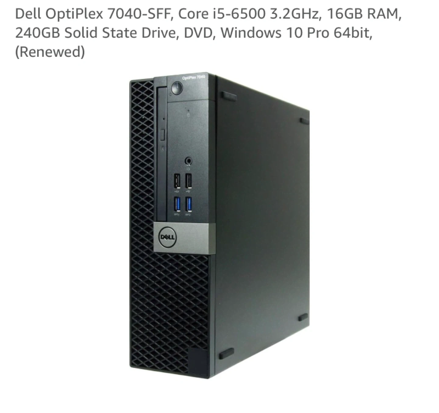 New (renewed) Dell OptiPlex 7040-SFF, Core i5-6500 3.2GHz, 16GB RAM, 240GB Solid State Drive, DVD, Windows 10 Pro 64bit Keyboard and mouse included $120 Pickup in Whitby