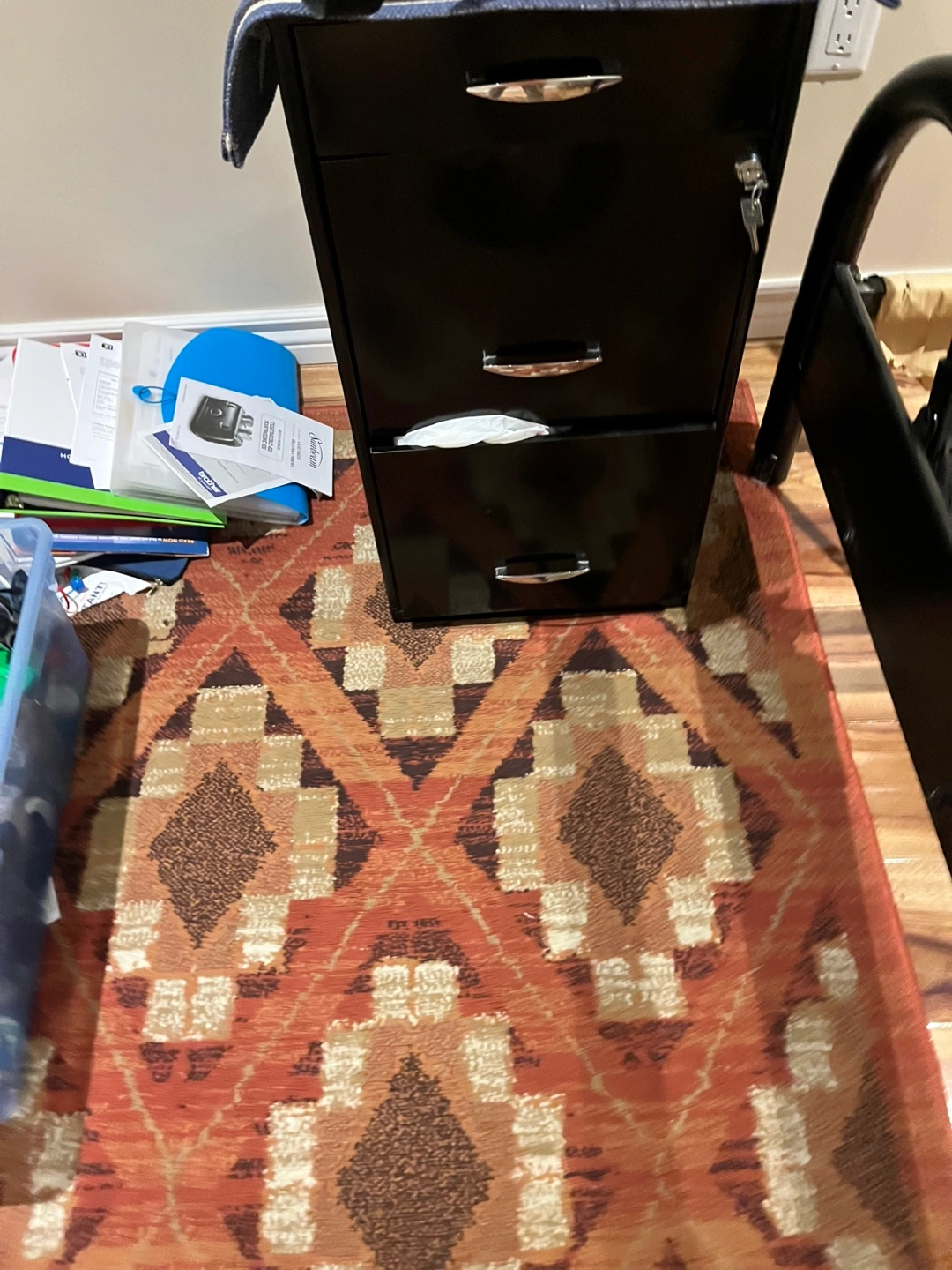 This is a patterned area rug with a Southwestern-inspired design. It features a mix of geometric shapes and earthy tones, primarily in shades of brown, beige, and red. Perfect for adding a touch of warmth and style to any room