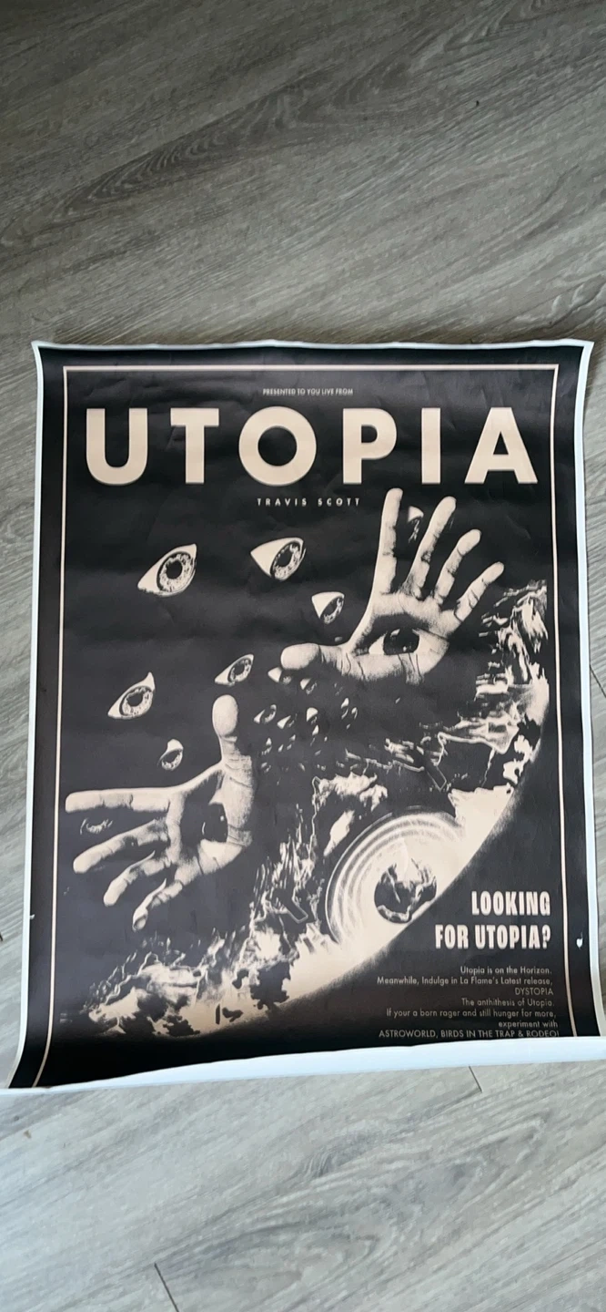 Travis Scott Utopia poster, canvas-type material.