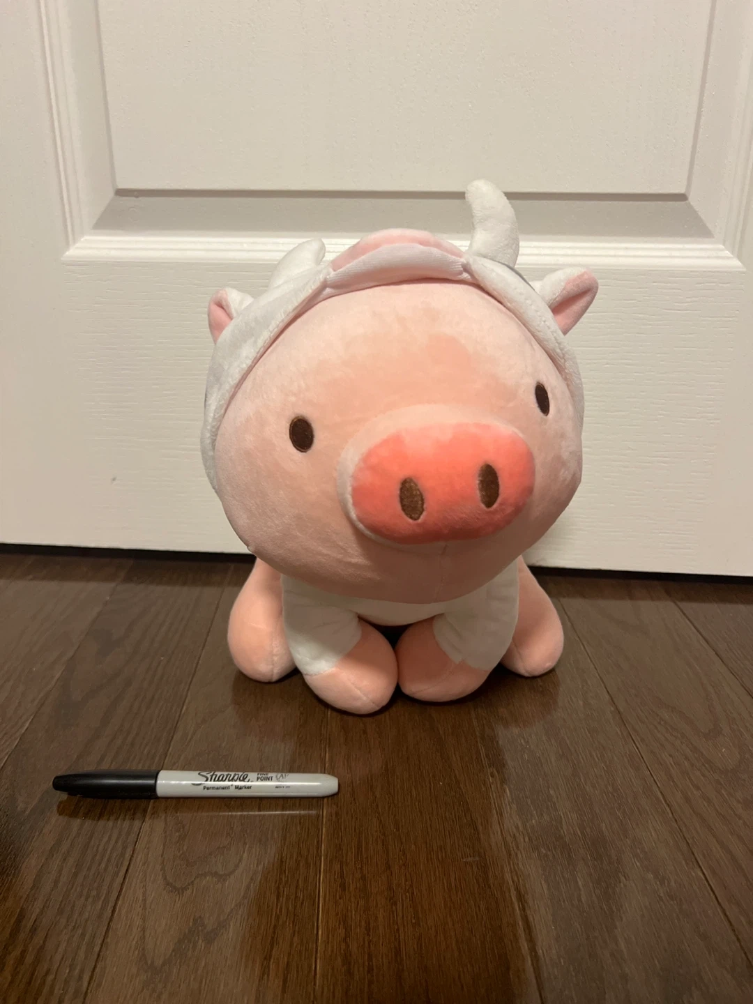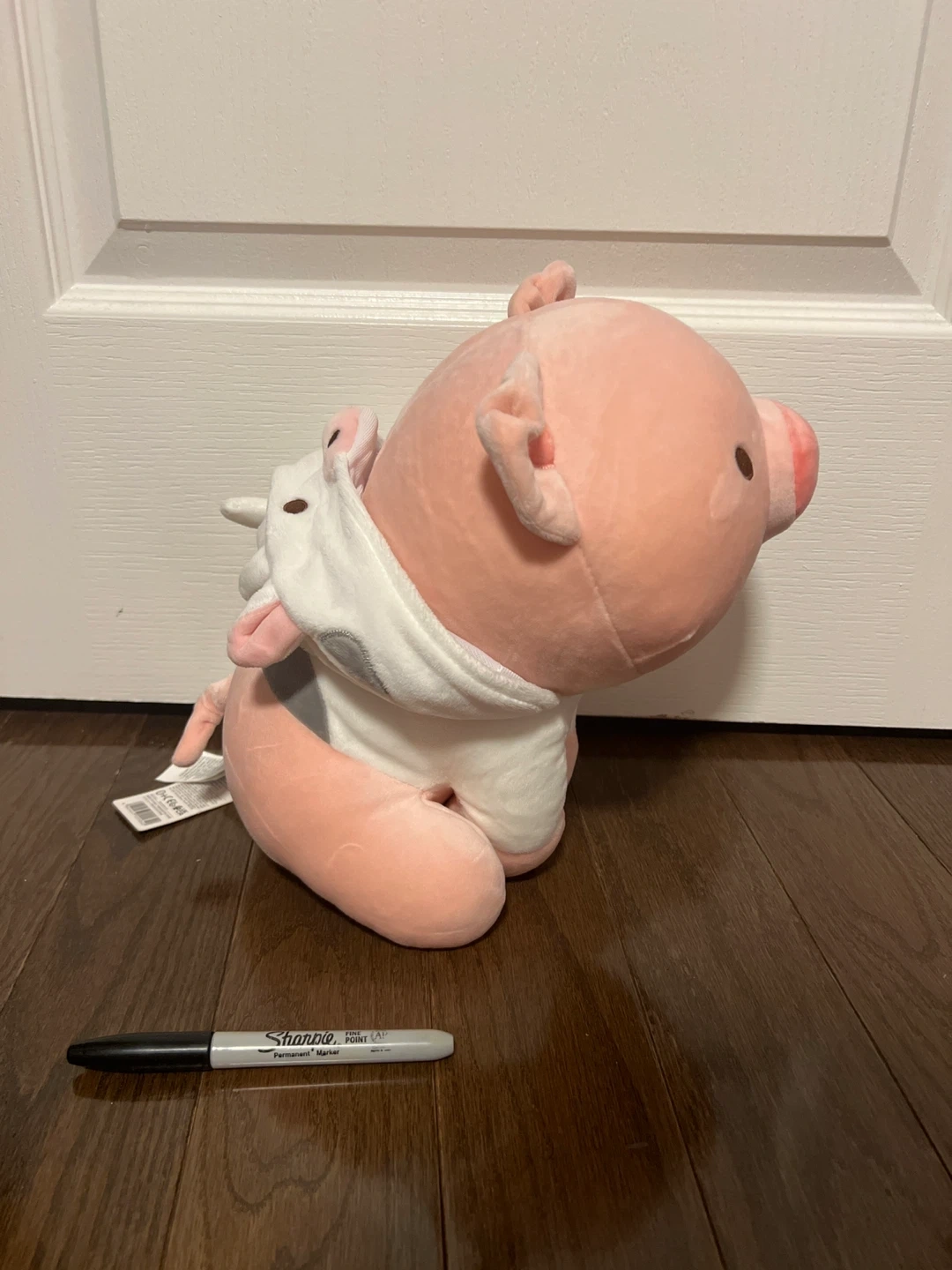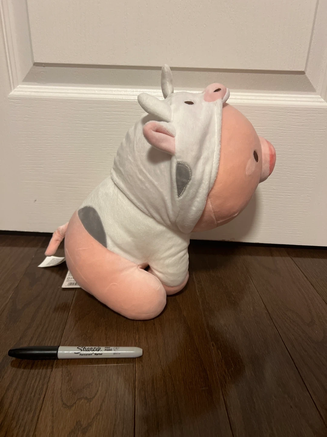 Super cute Miniso Life plush toy! It's a pink pig wearing a cow costume. It's in great condition and ready for a new home