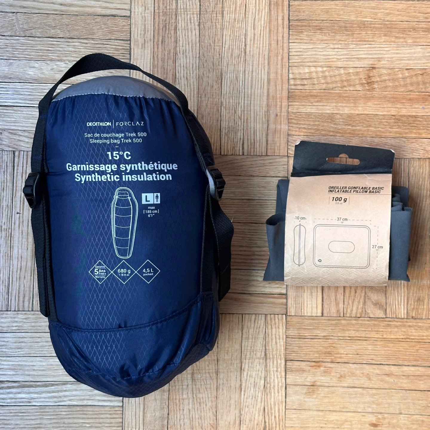 Selling a Decathlon Forclaz Trek 500 sleeping bag with inflatable cuscion! USED ONLY ONCE. It's in excellent conditions and ready for your next camping trip. - Comfort temperature: 15°C - Limit temperature: 10°C - Suitable for people up to 185 cm (6'1") tall - Synthetic insulation - Includes an inflatable pillow Selling both together! Pick up near Yonge and Bloor