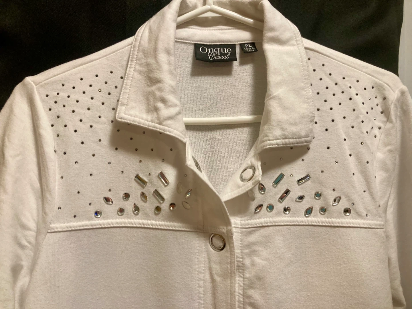 Women’s dress shirt jacket . Cotton . Size lrg / extra large. Gently worn and excellent condition. Looks new. From a smoke free home pick up In Woodstock, no delivery, first come first served. $2 firm