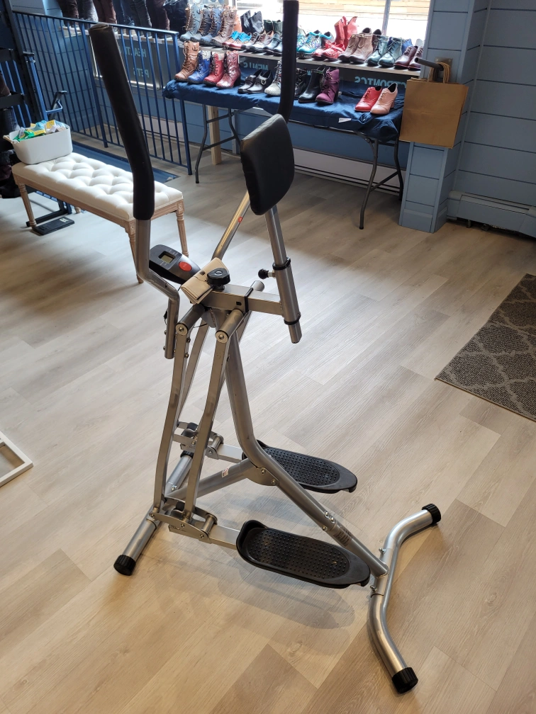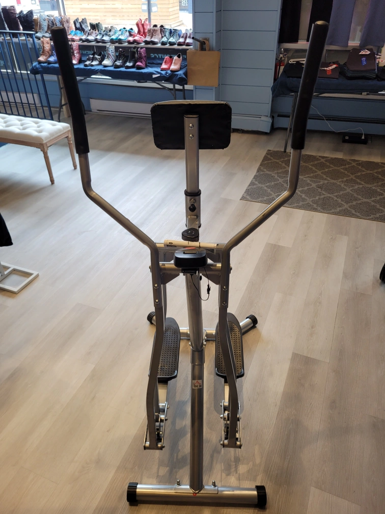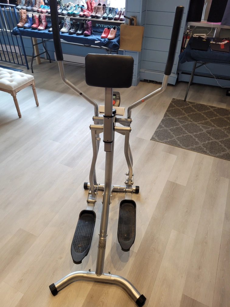 Get your cardio in with this new elliptical machine! - Air Walker Machine: This gazelle exercise machine offers a smooth, low-impact workout with a 31.5" (80 cm) stride. Protects your knees while engaging arms, shoulders, legs, and thighs for full-body training. Quick to assemble and suitable for home use. - LCD Monitor: Displays time, calories burned and distance, helping you stay motivated and meet fitness objectives. - User-Friendly: This leg exercise machine is designed to be easy to use and is suitable for individuals of all skill levels. - Aerobic Training: Ensure the effectiveness of your workout by maintaining a reasonable level of effort. - Dimension: 38.2" L x 23.7" W x 59.5" H (97 x 60.3 x 151.2 cm). Maximum load 242 lbs (110 kg). Easy to assemble. Overall Dimensions: 38.2" x 23.7" x 59.5" Weight Capacity: 242 lbs Maximum Stride Length: 80 Centimeters Maximum Weight Recommendation: 242 lbs Item Weight: 36 lbs * Pick up in store at 258 Main Street South, Newmarket (by appointment only to guarantee we are open). *** Payable by cash, debit or credit ***