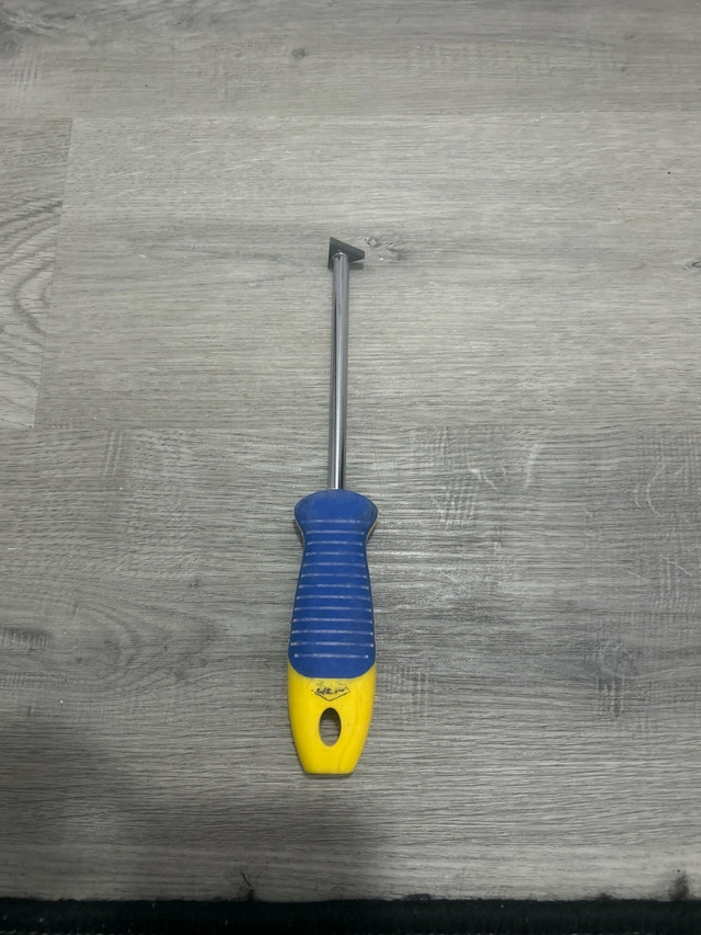 This Grout Removal Tool is ideal for removing grout. It is in used condition. * Comfort grip handle * Steel shaft for durability * Angled blade for efficient grout removal