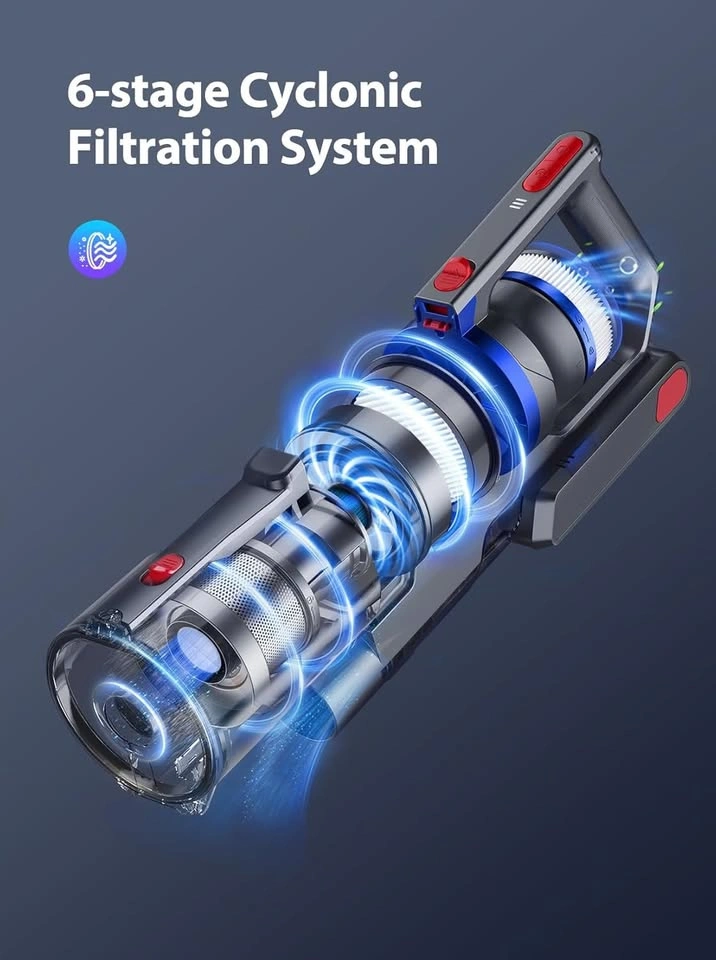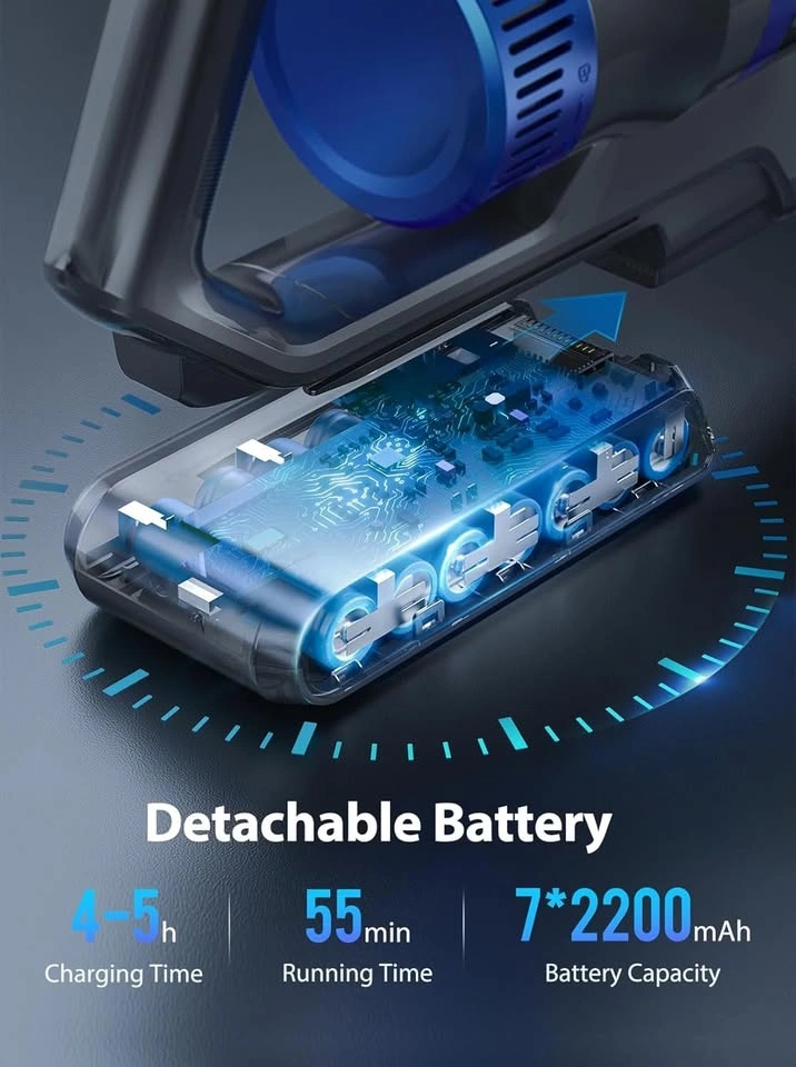 Buture JR500 cordless vacuum cleaner with an upgraded 450W brushless motor. It has three-speed suction (15KPA~38KPA) for different cleaning needs. The battery ensures cleaning time up to 55 minutes (20 minutes at high suction and 55 minutes at low suction). The battery can be removed and replaced. It features a large diameter electric brush with a V-shaped roller to prevent hair from tangling, and 6 LED lights. The 6-layer filter system filters particles as small as 0.3μm. The dust bucket has a 1.2L capacity. Pick up in Pickering by whites road and sheppard ave.