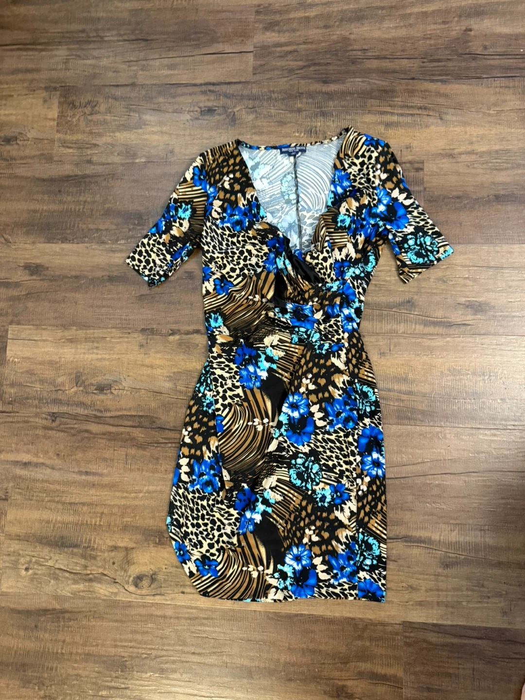 Bershka dress with a fun floral and animal print. It's a short sleeve, wrap-style dress that's perfect for a night out or a casual day. The dress is in great condition and ready for a new home