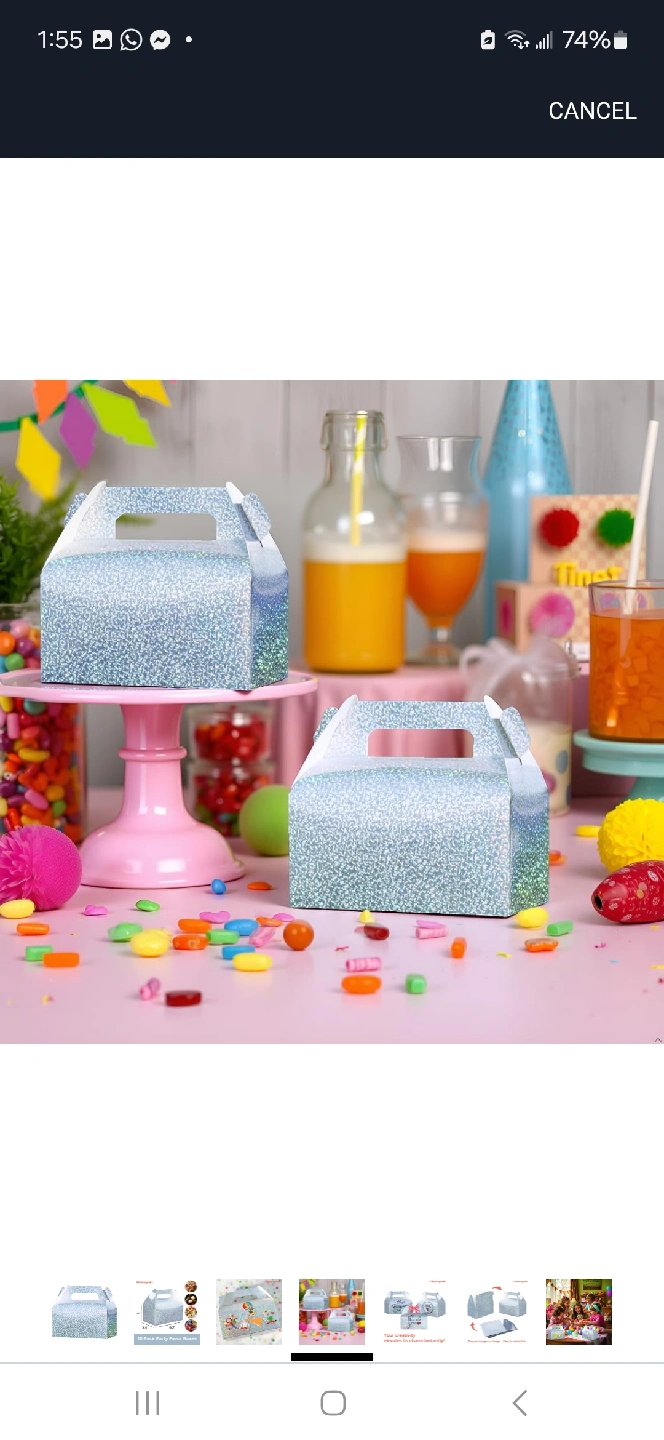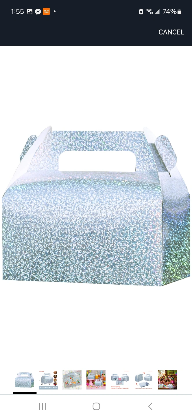 These Unicopak party favour boxes are perfect for any celebration! They come in a pack of 10 and are great for filling with treats and small gifts. The boxes measure 6.5" x 4" x 3.5". They have a glittery silver finish that adds a touch of sparkle to your party. I have 2 packs of 10 each. Both packs for $10. Pu from Cambridge.
