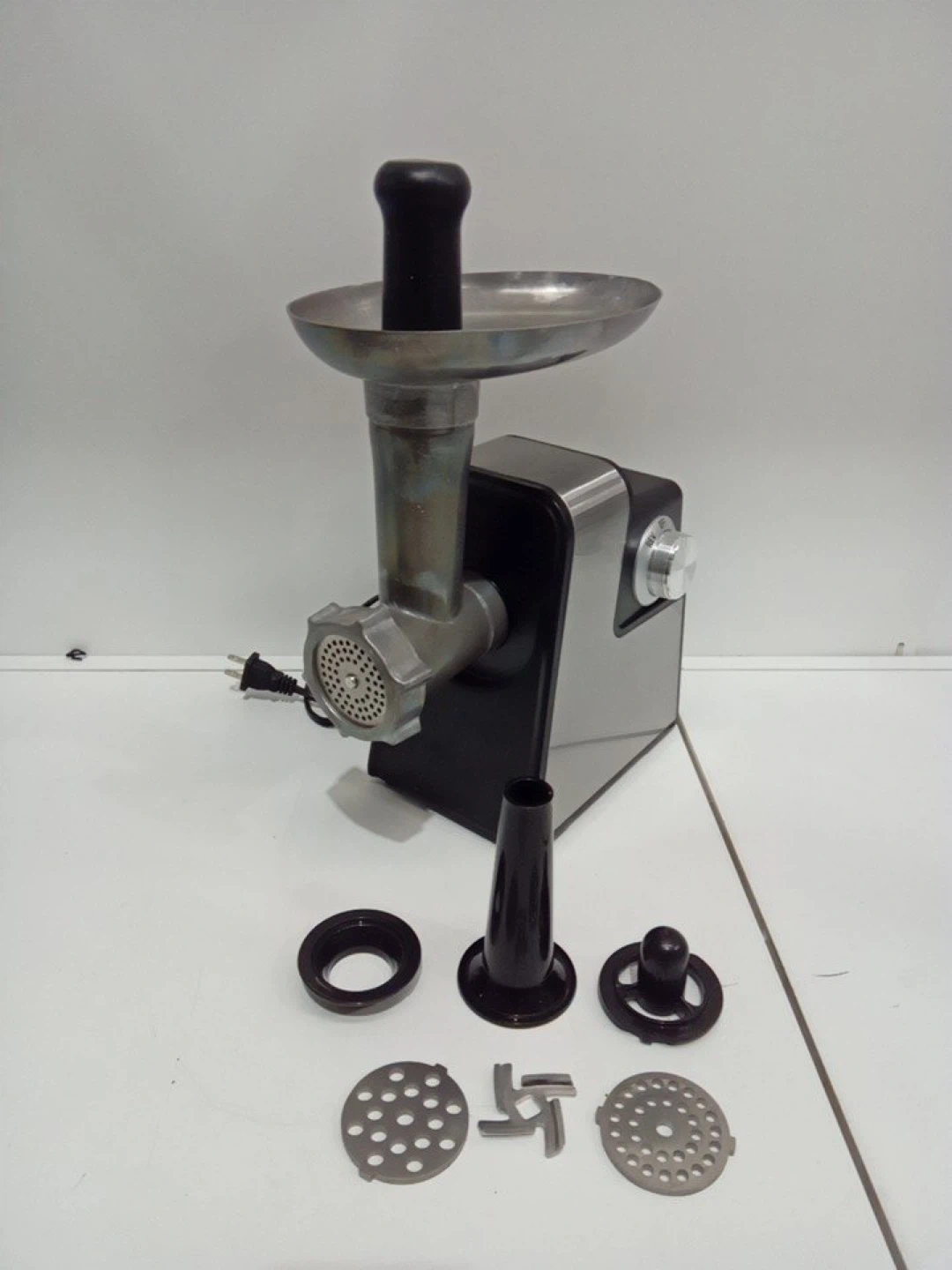 Selling an electric meat grinder in silver and black. It comes with all the attachments you see in the picture. Perfect for making your own ground meat at home!