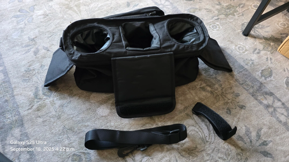 Keep everything you need for your little one organized with this universal stroller organizer! It's in great condition and ready for a new home. Key features: - Insulated cup holders - Large capacity - Phone pocket - Detachable shoulder strap Accessorie fits compact design fits any strollers