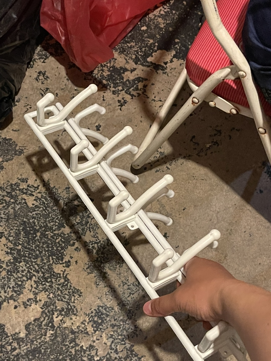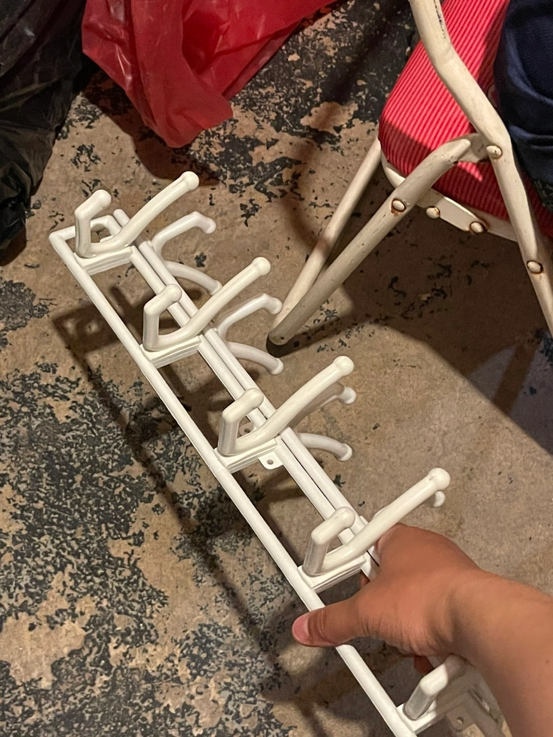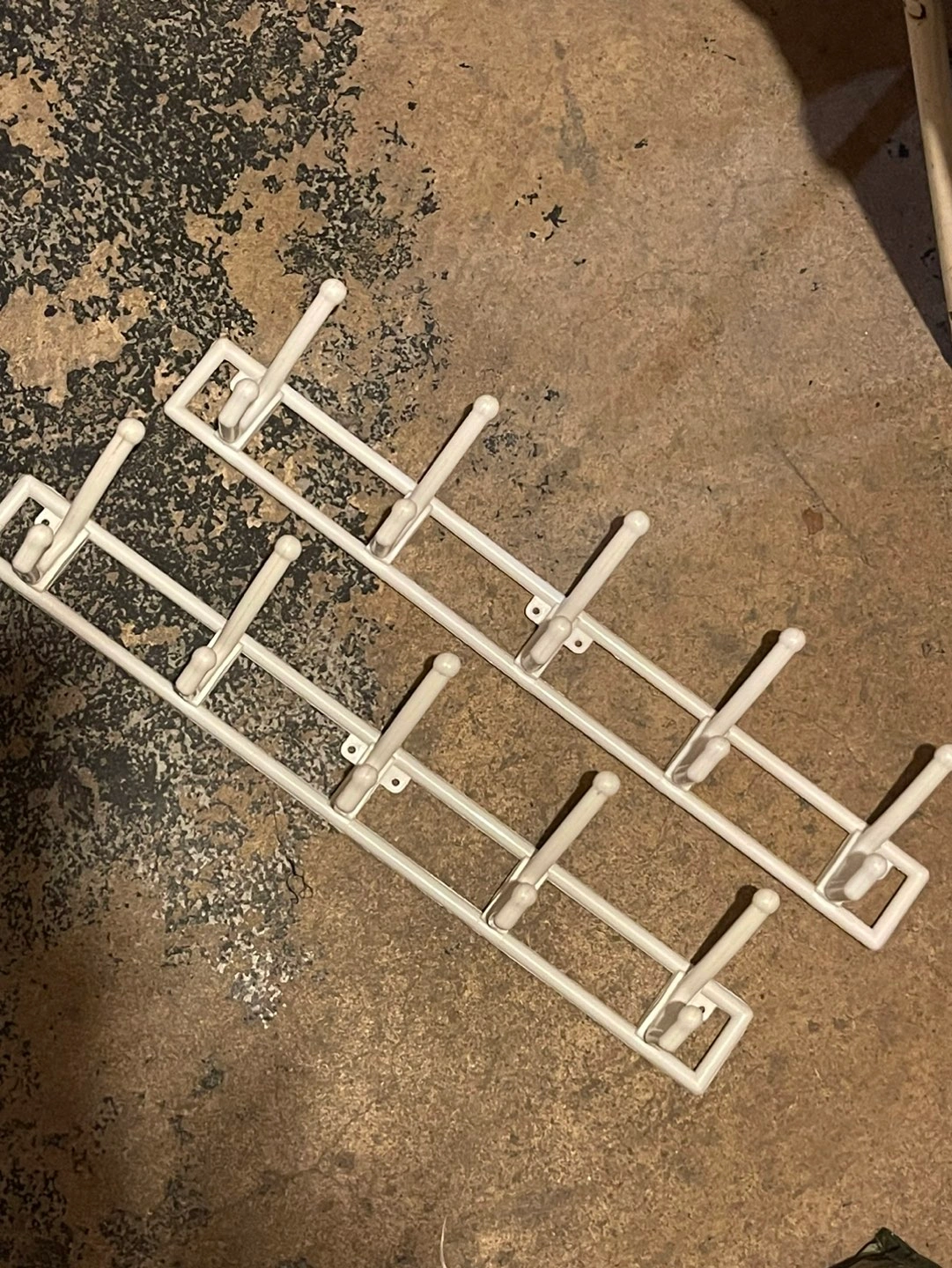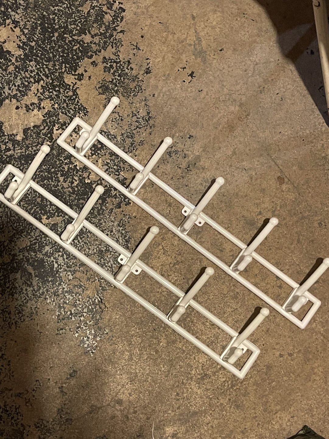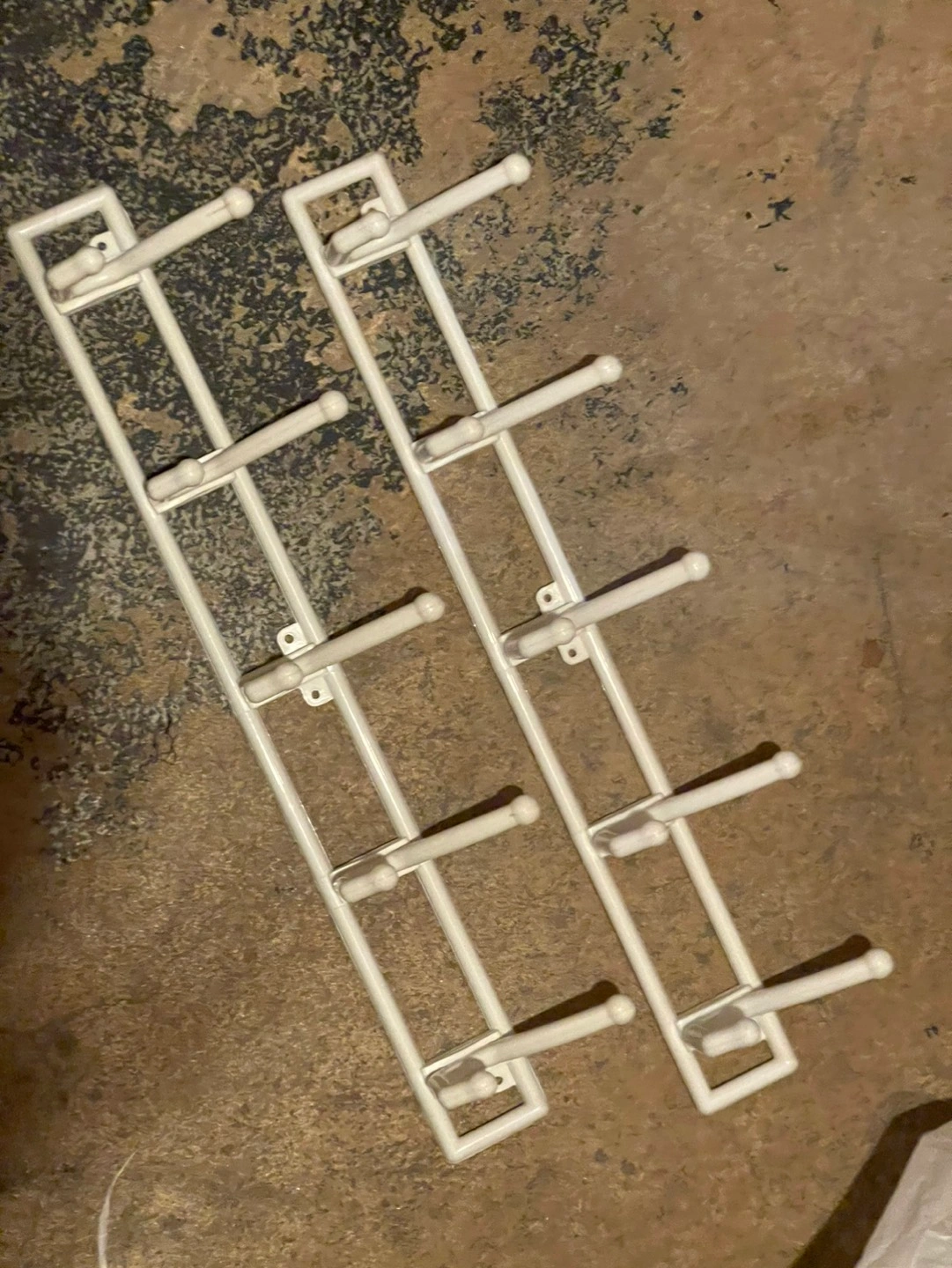 Two clothes hangers for the door. Needs to be screwed on to the door.