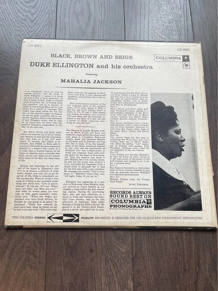 Original 1958 U.S. stereo pressing of Black, Brown & Beige on Columbia (CS 8015), featuring the legendary Mahalia Jackson. A deeply moving and historically significant orchestral jazz work—perfect for serious collectors, audiophiles, or fans of Duke’s monumental suite. Album Highlights: A six-part tone parallel including “Part IV: Come Sunday” and “Part VI: 23rd Psalm,” showcasing Ellington’s intent to elevate jazz narrative with spiritual gravitas. VG++ Grading • Catalog/Labels: Columbia CS 8015 (“stereo Columbia” logo), printed in the USA 📍 Pickup: Toronto (West Queen West)