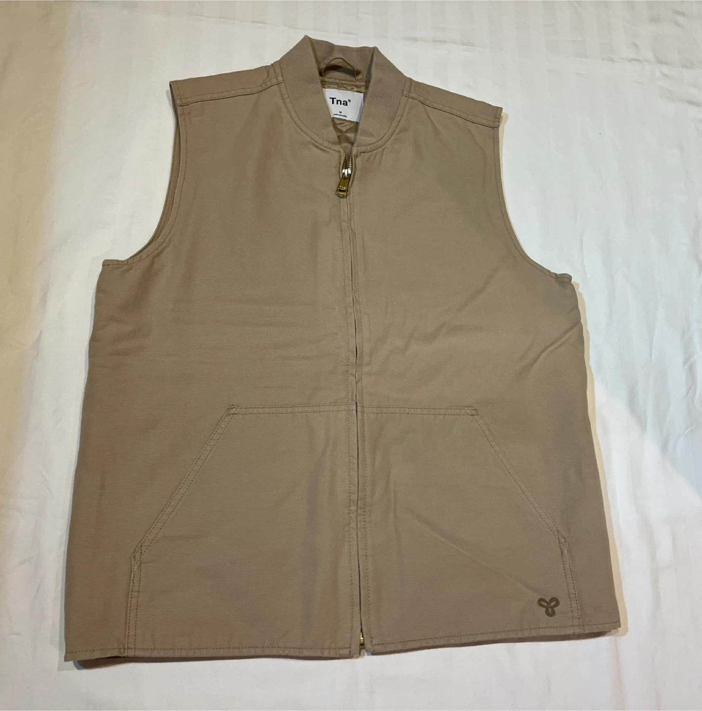 New w/o tags. Never worn. Selling a TNA vest in a neutral colour. It's a size medium. The vest features a quilted lining and a front zipper closure. Great pockets. Perfect for fall! Last pic taken to better show true colour (it’s lighter in person than it looks in first few pics, it’s a lighter beige/natural).