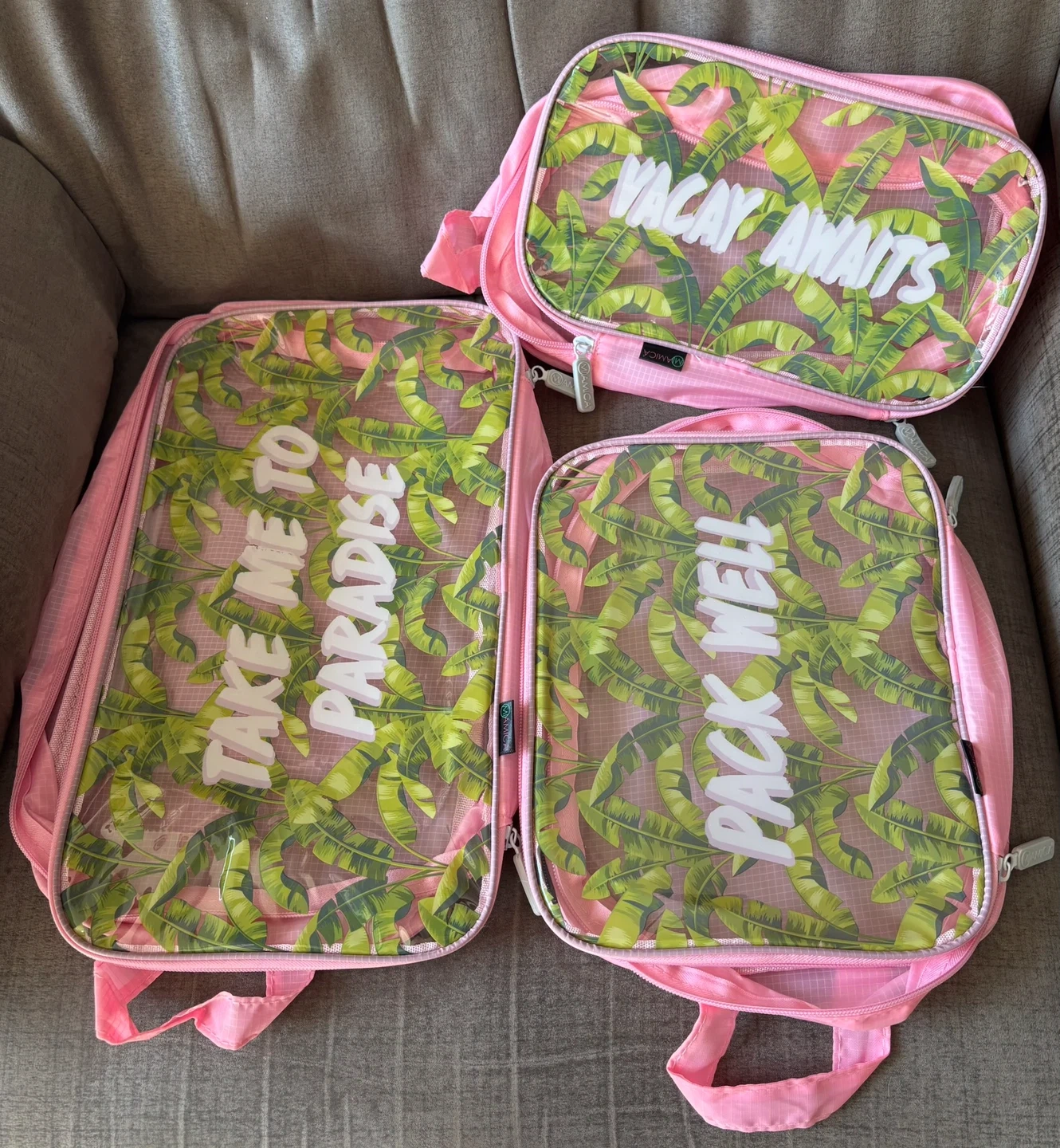 Exact cash only All as is, info in last photo 2 sets of 3 packing organizers & cosmetic bag, $10.00 each Bag has pocket & zipper inside iPad case $2.00 Lunch bag $5.00, has mesh bottle holder inside Pencil case $2.00 Small change purse .50 Must go now