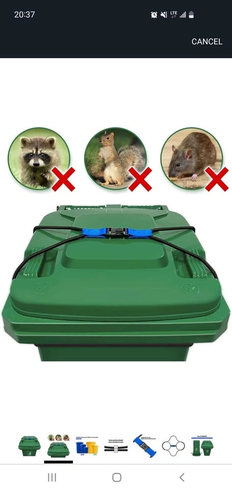 Trash Can Lock, Lid Lock for 30-50 Gal Outdoor Garbage Cans, Heavy Duty Bungee Cord Garbage Can Lock for Animals, Squirrels, Dogs, Raccoons