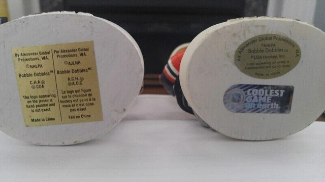2 NHLPA Bobble Dobbles. These weigh 1 lb. each or 1/2 kilogram and are 8 inch tall. These are heavy ceramic solid bobble heads. Prefer to sell together but will sell individually.