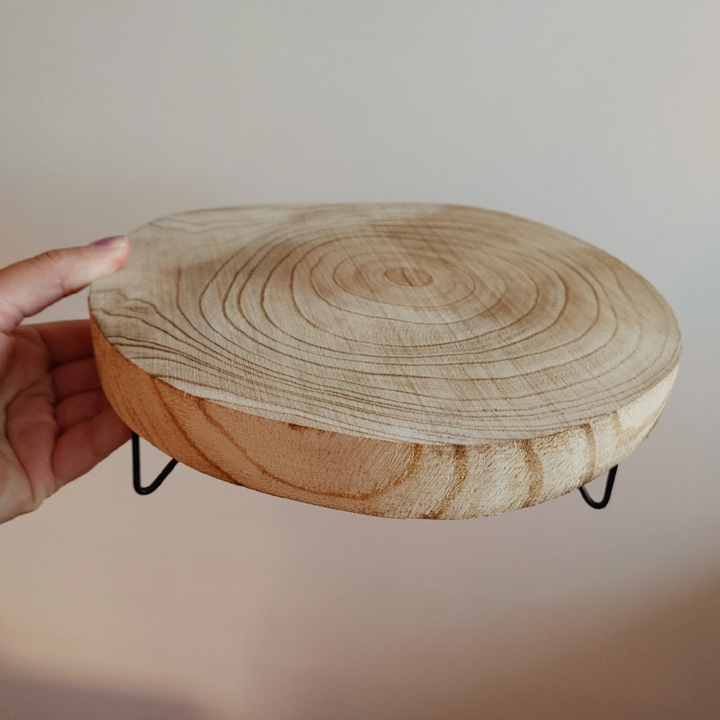 Selling a cute wooden plant stand or just decorative stand It's made from a slice of wood and has little metal legs. Perfect for adding a rustic touch to your home decor! New Green plant not including