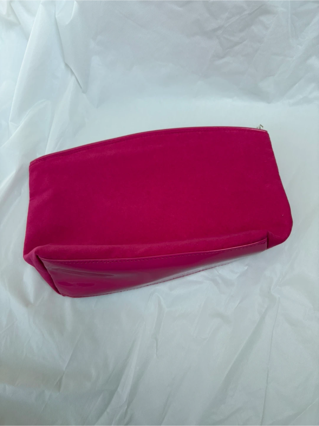 Selling a cute pink cosmetic bag! Brand new and never been used and it’s perfect for storing your makeup or toiletries. The zipper works smoothly, and it's a vibrant pop of colour. It’s faux suede and a patent pink on the bottom.