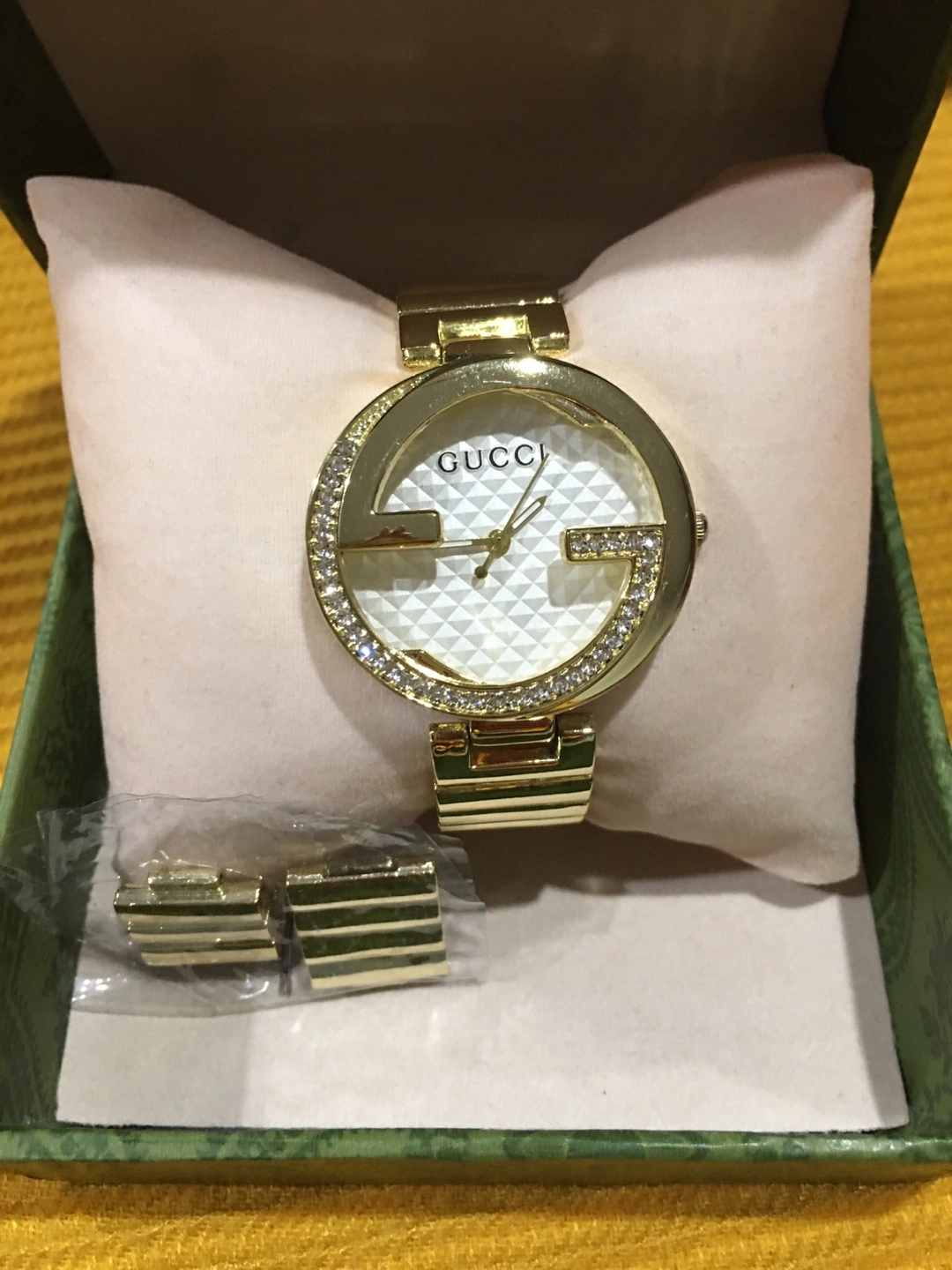 Selling a beautiful Gucci women's watch in gold. It comes with the original box and is in excellent condition. Perfect for adding a touch of elegance to any outfit! Pick up at Southgate Mall after 6pm on weekdays, weekends between 5-6pm or McDonald’s at Meadowbrook Village Cash only Price reflects authenticity