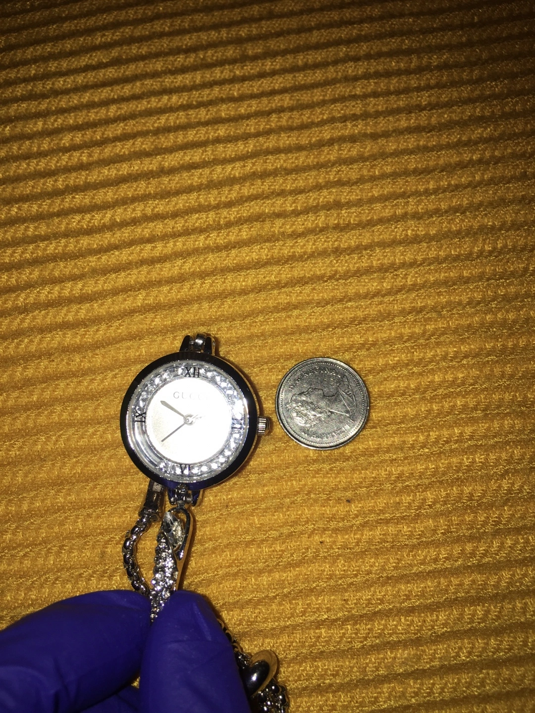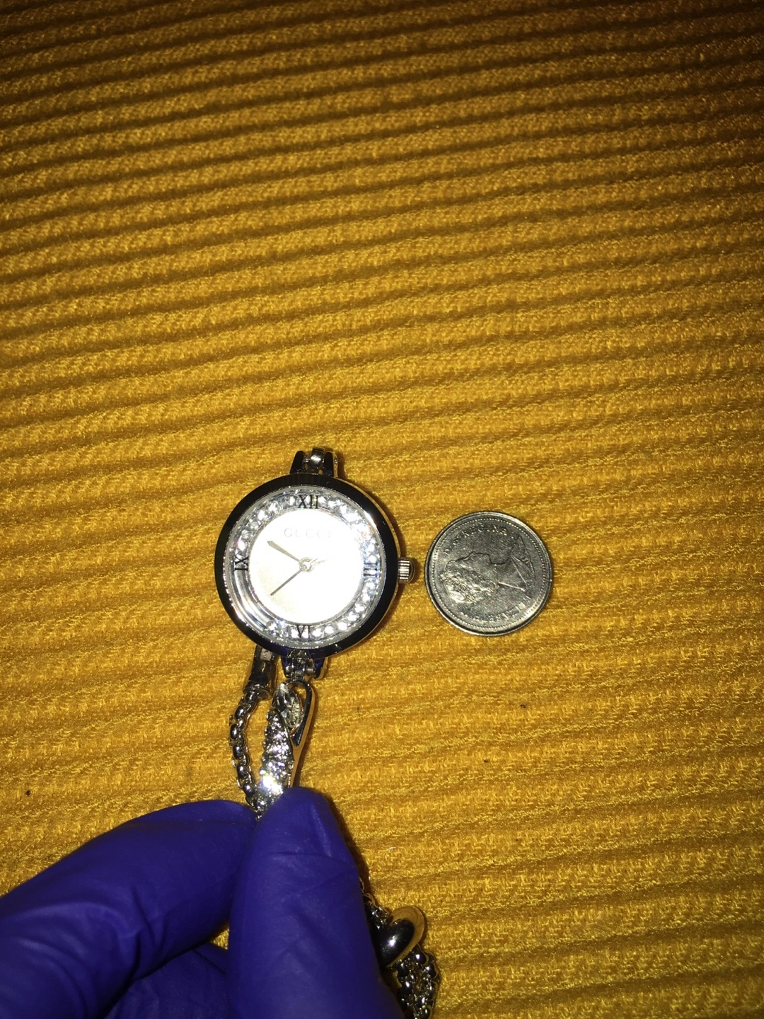 Selling a beautiful Gucci ladies watch! It comes with its original box. The watch has a silver-tone finish and a unique chain bracelet. It's brand new. Pick up at Southgate Mall after 6pm on weekdays, weekends between 5-6pm or McDonald’s at Meadowbrook Village Cash only Price reflects authenticity