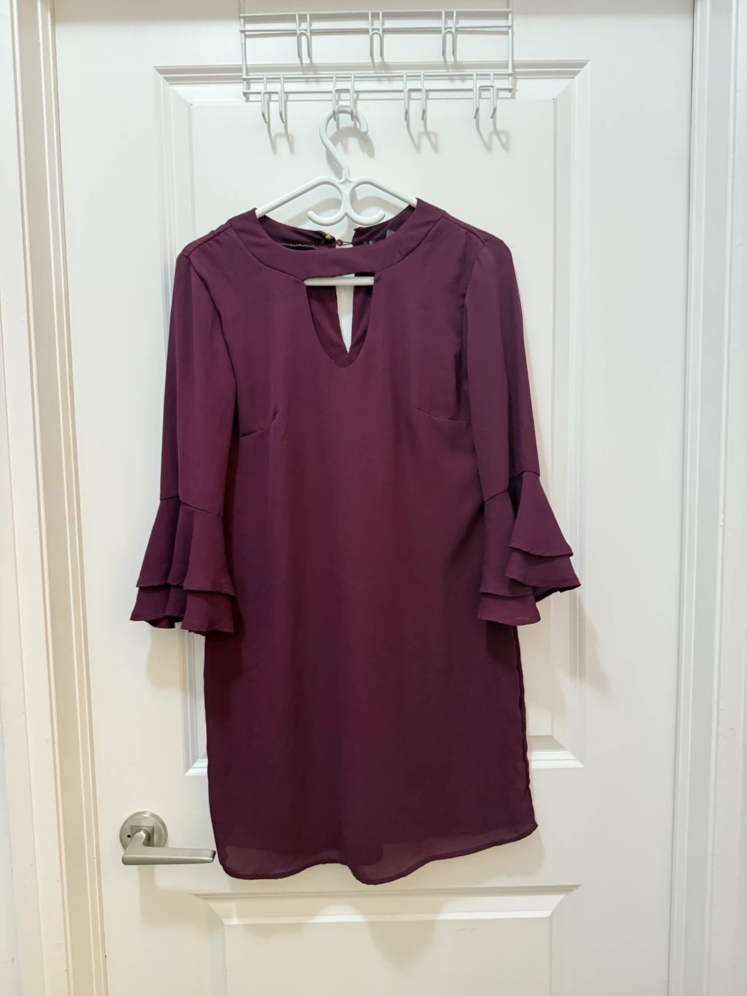 Selling a cute burgundy dress from Core LifeStyle! It's a size small and features stylish bell sleeves.