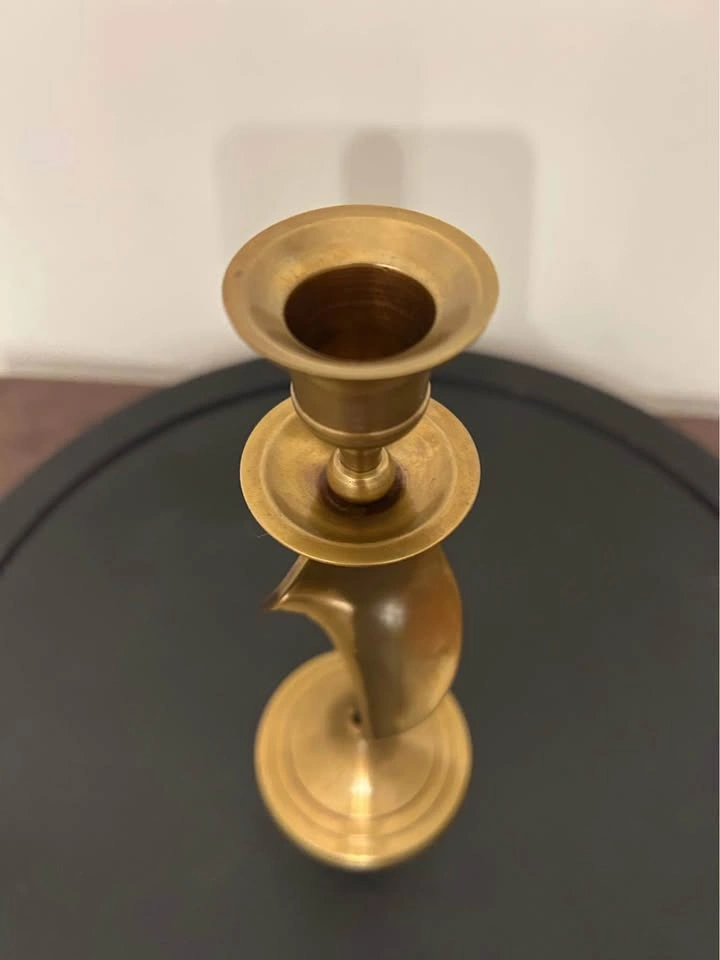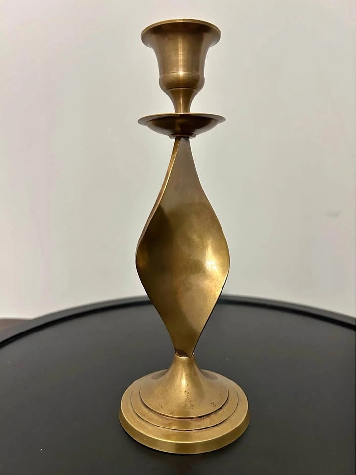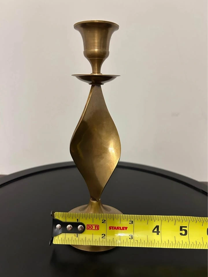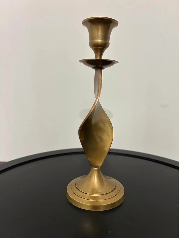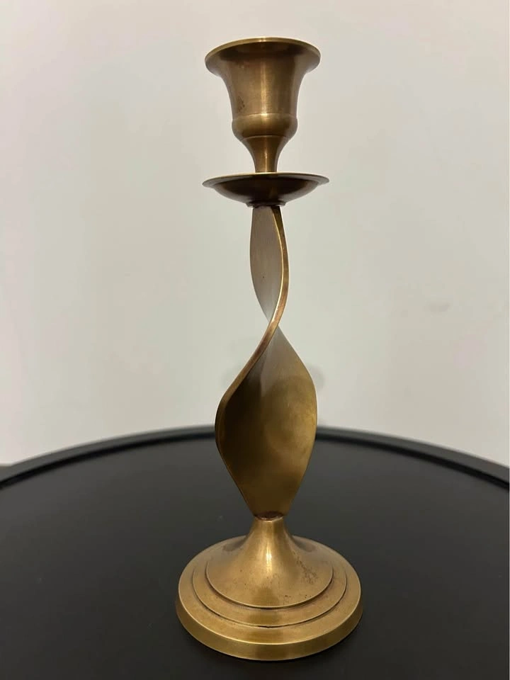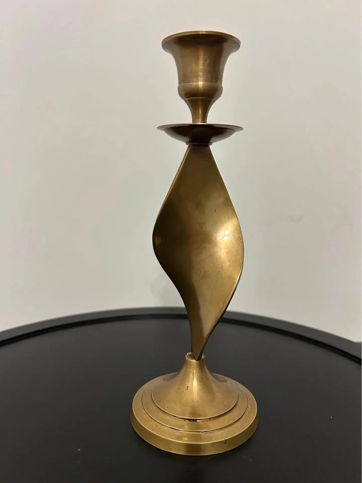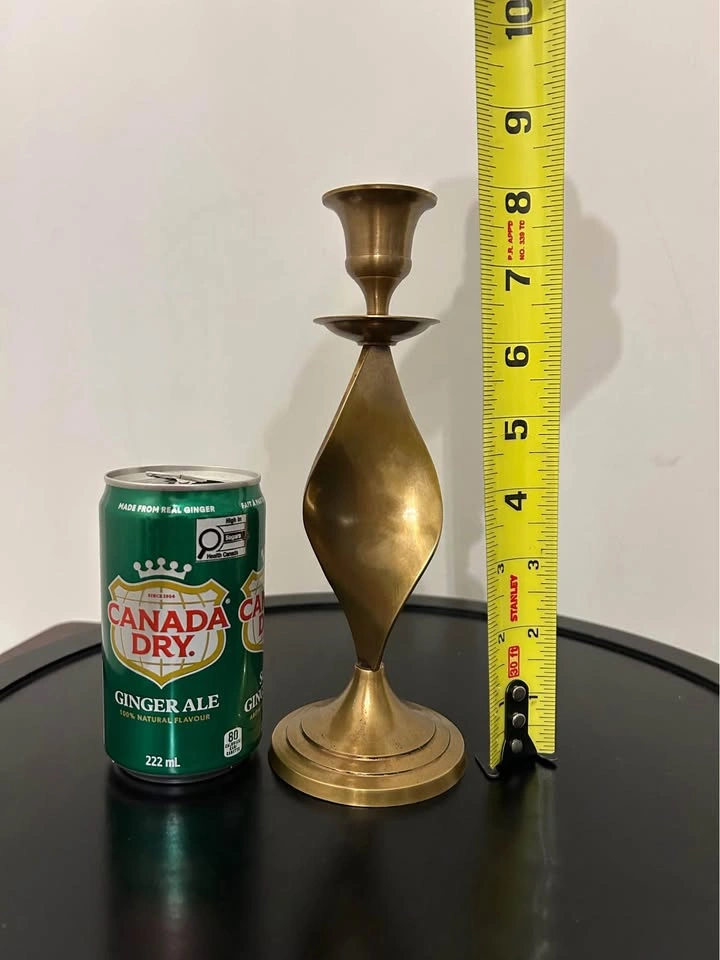 Elegant vintage brass candle holder with a sculptural mid-century modern twisted design. Its geometric curves and warm golden tone make it a perfect accent for vintage décor, table settings, or as a collectible piece. Adds a touch of sophistication and timeless charm. Pick up: Seton area, Calgary. See also my other lots. Open to your questions and suggestions. If necessary, I provide additional photos. These are not new things, so please look carefully at the photos and videos. Sizes are submitted on request and also using a tape measure in the photo.