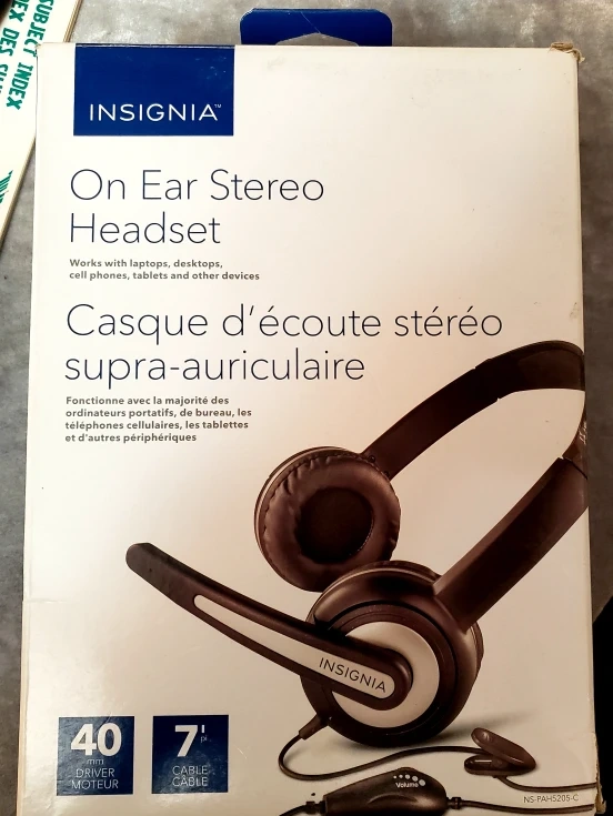 Selling a brand new Insignia On Ear Stereo Headset, still in its original box! It works with laptops, desktops, cell phones, tablets, and other devices. Features include an adjustable boom microphone and headband, soft pivoting ear pads, and a noise-cancelling microphone for clearer communication. Also included is a Y cable adapter for computers and a quick setup guide