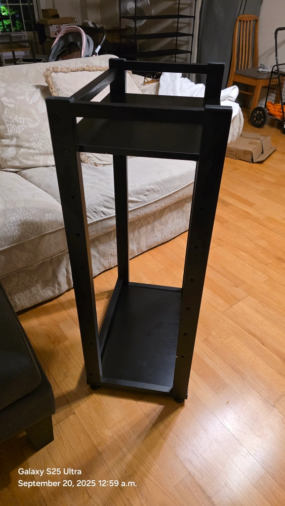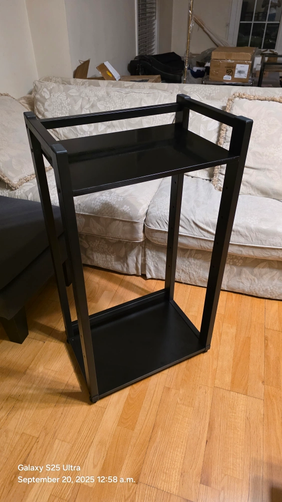 Selling a handy black metal rolling cart! It's in great shape and perfect for adding some extra storage to any room. The cart has two shelves, so you can store a variety of items. It's also on wheels, so it's easy to move around. Great for the kitchen, bathroom, or even as a bedside table can be plant stand or rolling printer stand or home decor. height adjustable shelves each can withstand aprrox 50 lbs comes with 4 set of wheels with brakes which cane put in place of stands brand new and assembled.