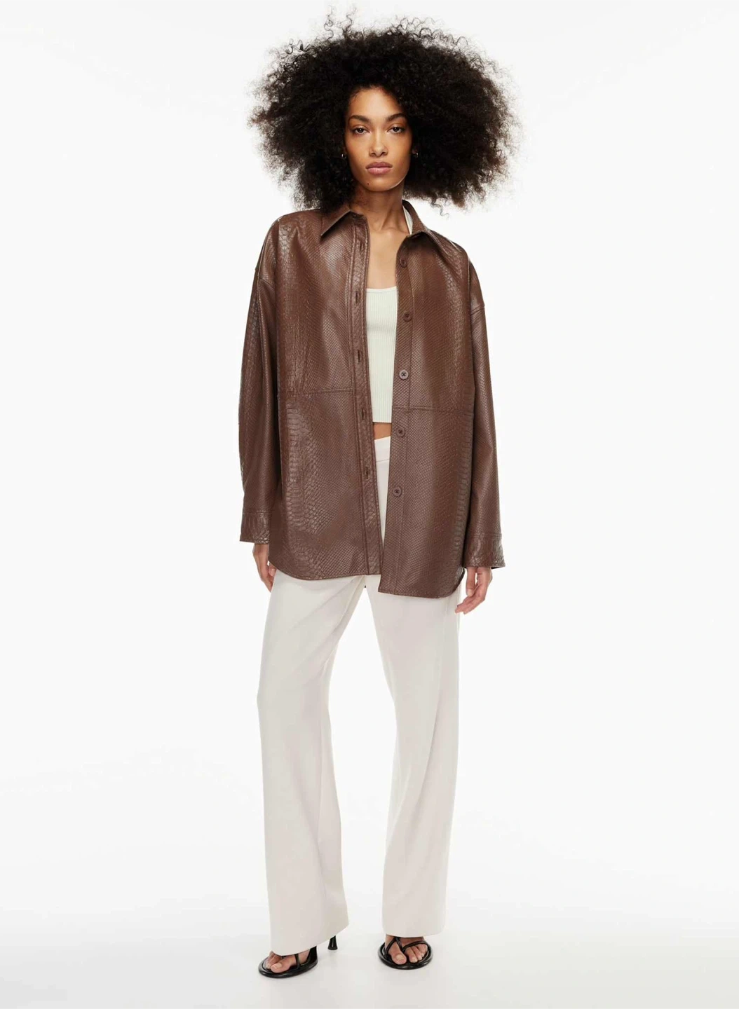 ⚠️PLEASE READ ITEM(S) DESCRIPTION⚠️ 🚨IF AD IS STILL UP, ITEM(S) STILL AVAILABLE🚨 Excellent preloved condition Sz. M How versatile you are, Vegan Leather This is a button-up shirt jacket with dropped shoulders and a rounded body hem. It's made with Python embossed Vegan Leather that looks and feels like the real thing. Features • Topstitch detailing throughout • Adjustable cuffs Materials & Care • Content: 100% polyurethane; Interior: 96% viscose, 4% elastane • Care: Machine wash • Imported Size & Fit • Fit: Relaxed - An easy shape that's just shy of loose • Length: Below Bum — Intended to hit below the bum • Model is 5'9"/175 cm wearing a size S • On average, customers say it fits slightly larger SERIOUS BUYERS ONLY PLS DONT ASK IF IT’S STILL AVAILABLE THEN NOT REPLY AFTER CASH/E-TRANS ONLY NO TRADES NO TRY ONS