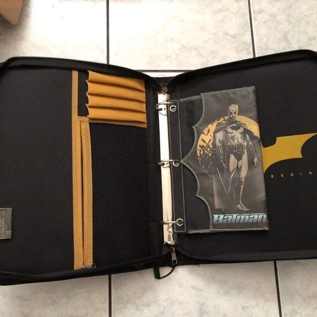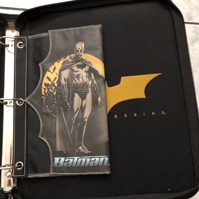 For sale: Mint condition Batman Begins 3 Ring Large Velcro Lock Binder with Batman Locking Binder Pouch inside. Great for securing all school supplies, including calculators, phones and personal valuables. Thanks for reading.