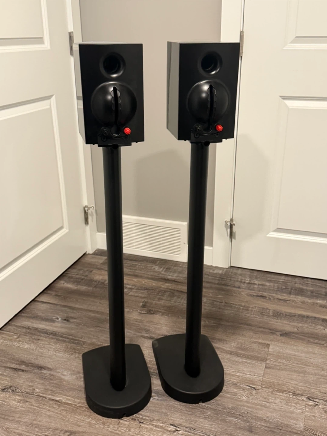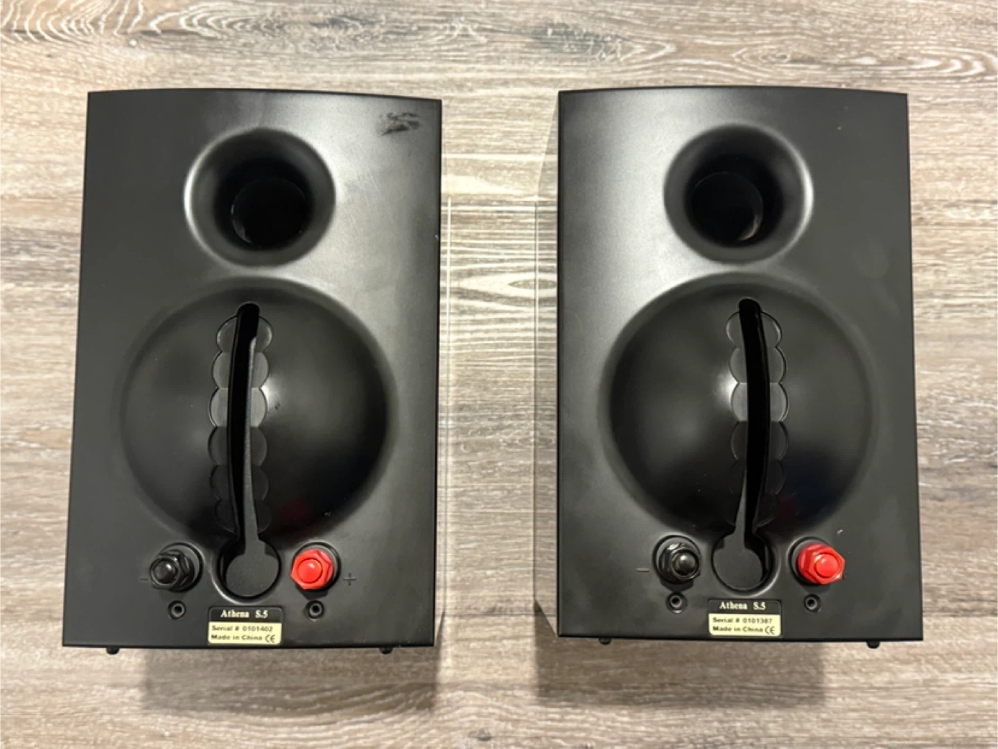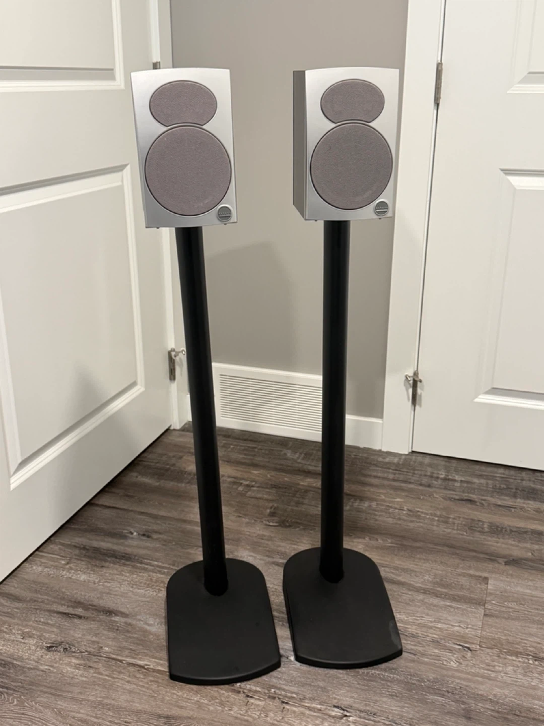 Selling a pair of Athena S.5 bookshelf speakers. They're in great shape and sound fantastic! Perfect for a home theatre setup or just enjoying your favourite music. They come with the speaker grills and the stands as well Piano black gloss with silver fronts Stands are 31 inches in height Drivers in perfect condition Pick up Sage Hill Cash only Pet and smoke free home Check out my other listings