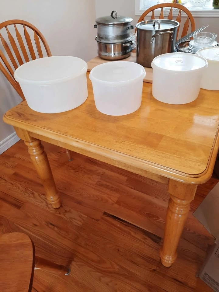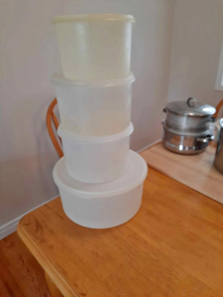 Tupperware 3 smaller ones are $5 each Large one is $10 Measurements in the photos