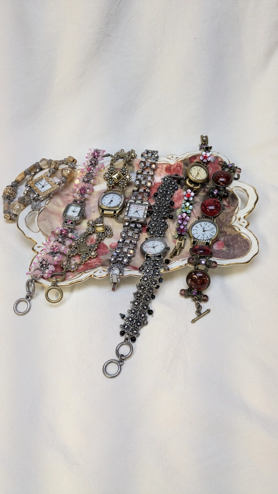 Selling a bundle of vintage bracelet watches. Each watch has a unique beaded design. Great for adding a bit of sparkle to any outfit! all with a new battery. great condition! pick up at my home in Aurora.