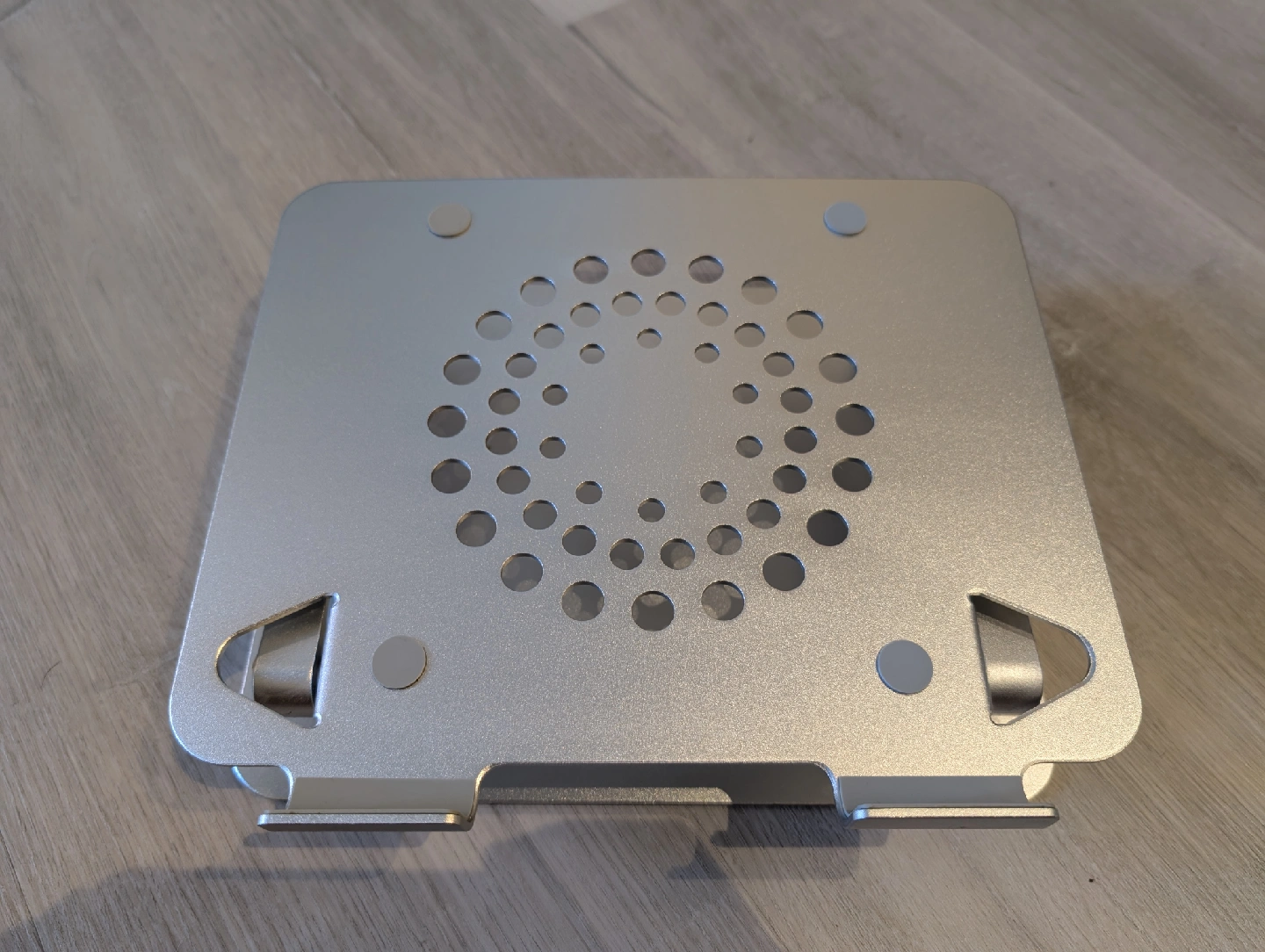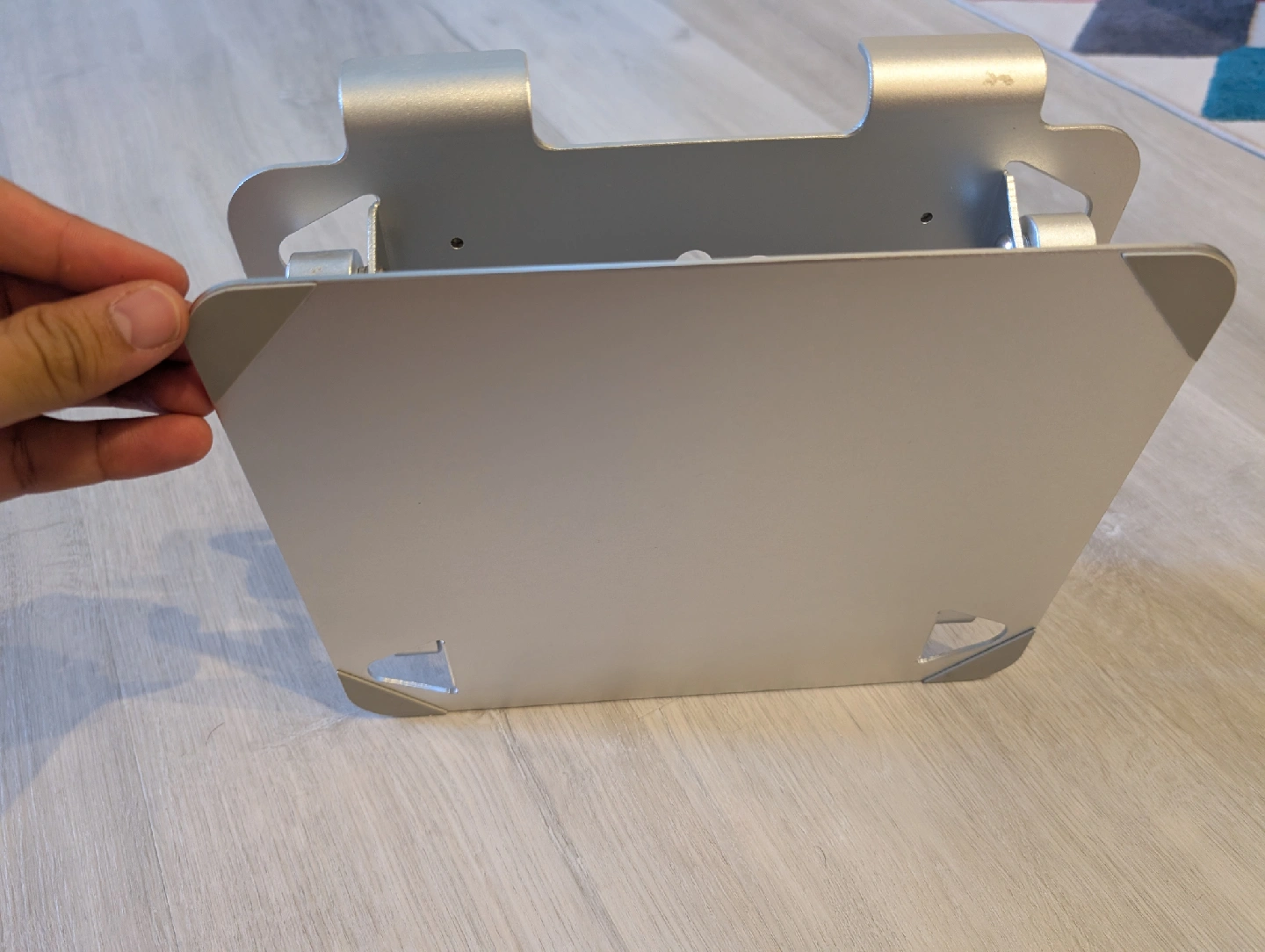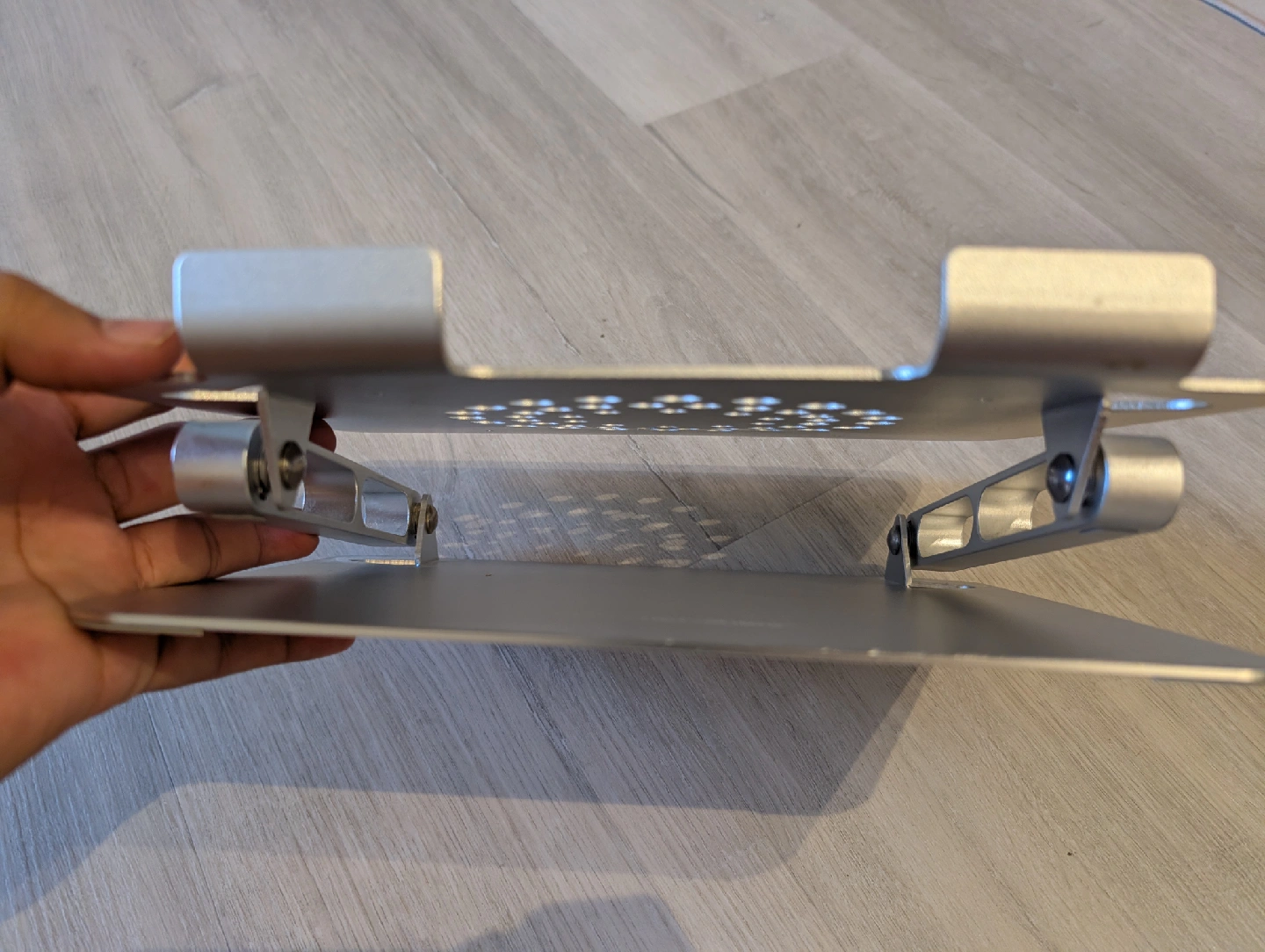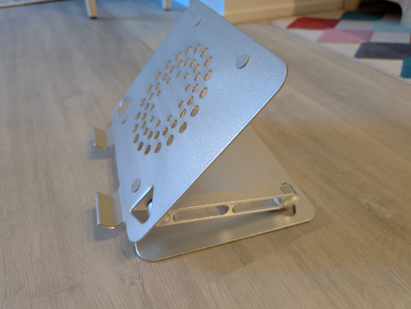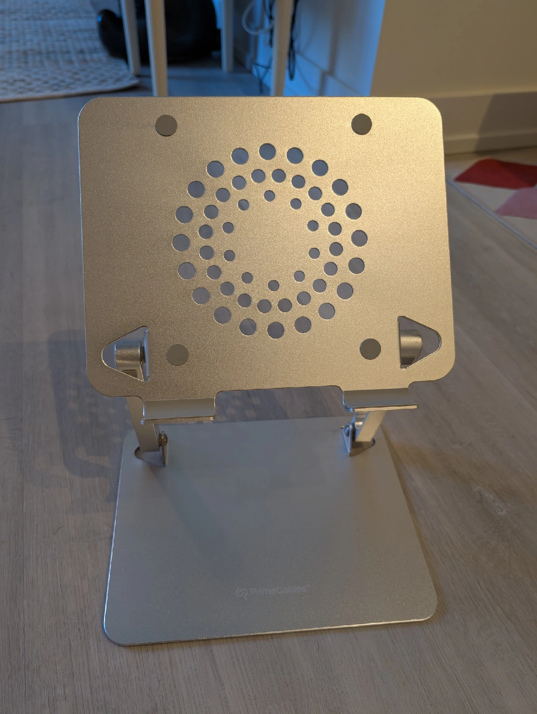 Selling a silver laptop stand from PrimeCables. It's in great condition and ready to help you work comfortably! It is portable and quite flexible, perfect for setting up a workstation anywhere in your home or office