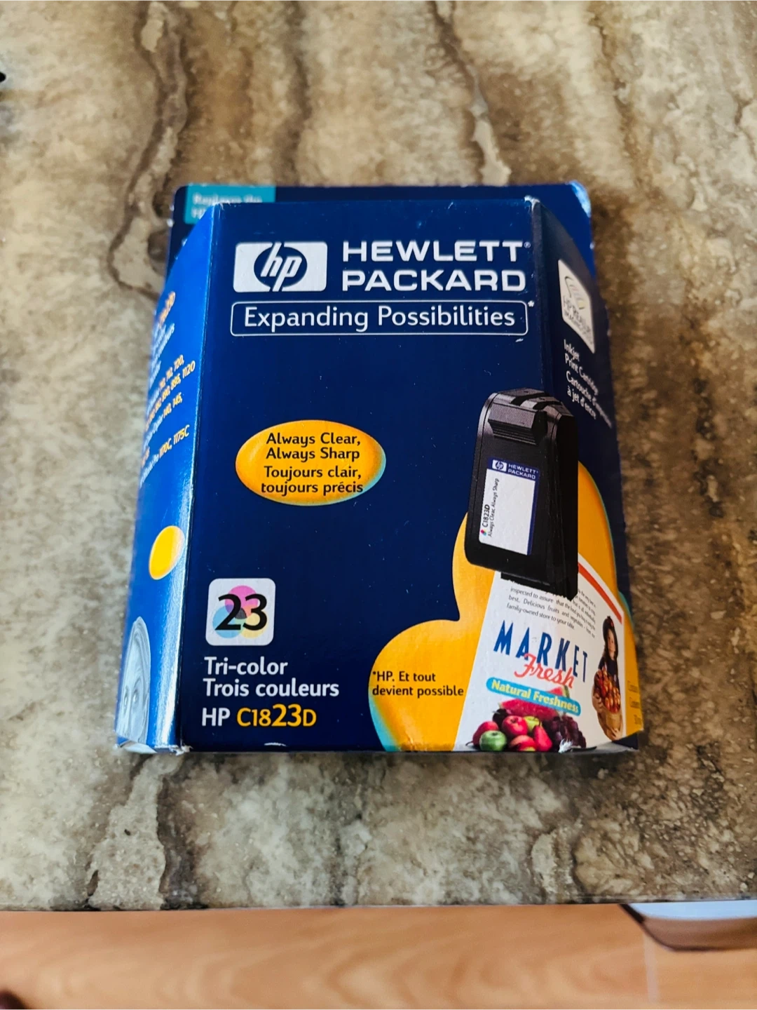Selling a HP 23 Tri-color ink cartridge, model C1823D.
