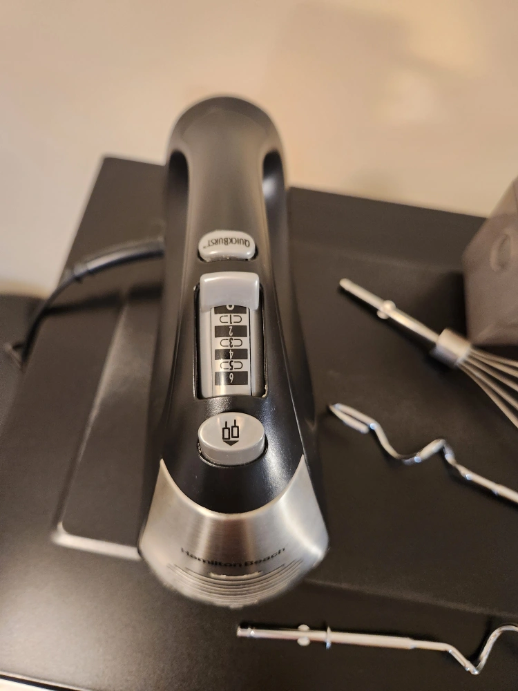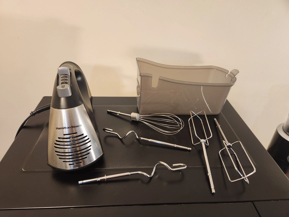 Selling a Hamilton Beach hand mixer. It comes with multiple attachments and a storage case to keep everything organized. It has variable speed settings, including a quick burst function. Price Firm. Pick-up Only. Cash Only