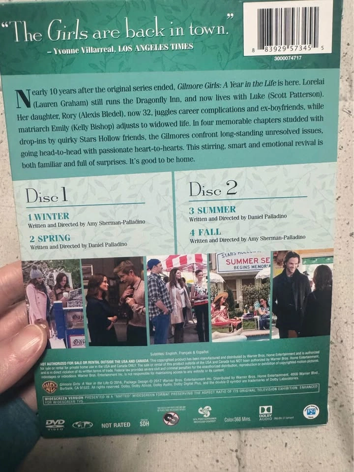 Relive the heartwarming moments with this used DVD of 'Gilmore Girls: A Year in the Life,' featuring Lorelai, Rory, and the quirky charm of Stars Hollow in four memorable chapters. Though pre-loved, the DVD is in good condition and ready to bring you back to your favourite mother-daughter duo. * Format: DVD * Region Code: Region 1 (U.S., Canada...) * Release Year: 2017 I'm clearing out some space on my shelves and this is one of the items up for grabs. If you're seeing this ad, the DVD is still available, so no need to ask! Happy watching!